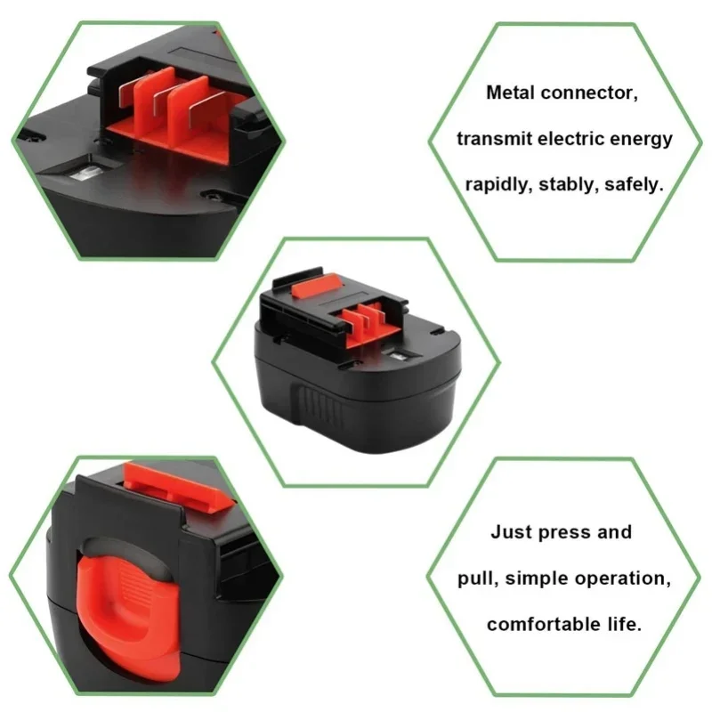 Idéal pour votre outil comme votre perceuse, marteau piqueur, ponceuse, tournevis, outil de cerclage ainsi que votre radio, coupe-herbe et taille-bordures toutes marques. Avec cette batterie 14.4V, vous aurez toute la puissance nécessaire pour accomplir toujours en une seule charge Tension: 14., 4VCapacité: 2200mAhTechnologie: Ni-MHLivraison 48h offerteBatterie neuve parfaitement compatible avec votre appareil., Tension: 14., 4V , Capacité: 2200mAh , Technologie: Ni-MH Batterie Black&Decker A14E 49993634 49993635 A-14-14.4V 3000mAh Ni-Mh(compatible)14.4V 3000mah outil de batterie, black-livraison gratuite,De haute qualité, la cellule japonaise, 3 ans de garantie Pack de batterie pour outil électrique Ceba 14.4V pour Black Decker A1714 A14 A14f A144 A144ex. 8,35 - 8,69 $US... Einhell Batterie Black Decker 18v AKKU Für Black&Decker 14,4V 2000mAh 2Ah Für KC-14 Chargeur Bosch 18v Akku A14, A1714, A9251, A144, A14F, A14NH für Black & Decker RD1440K