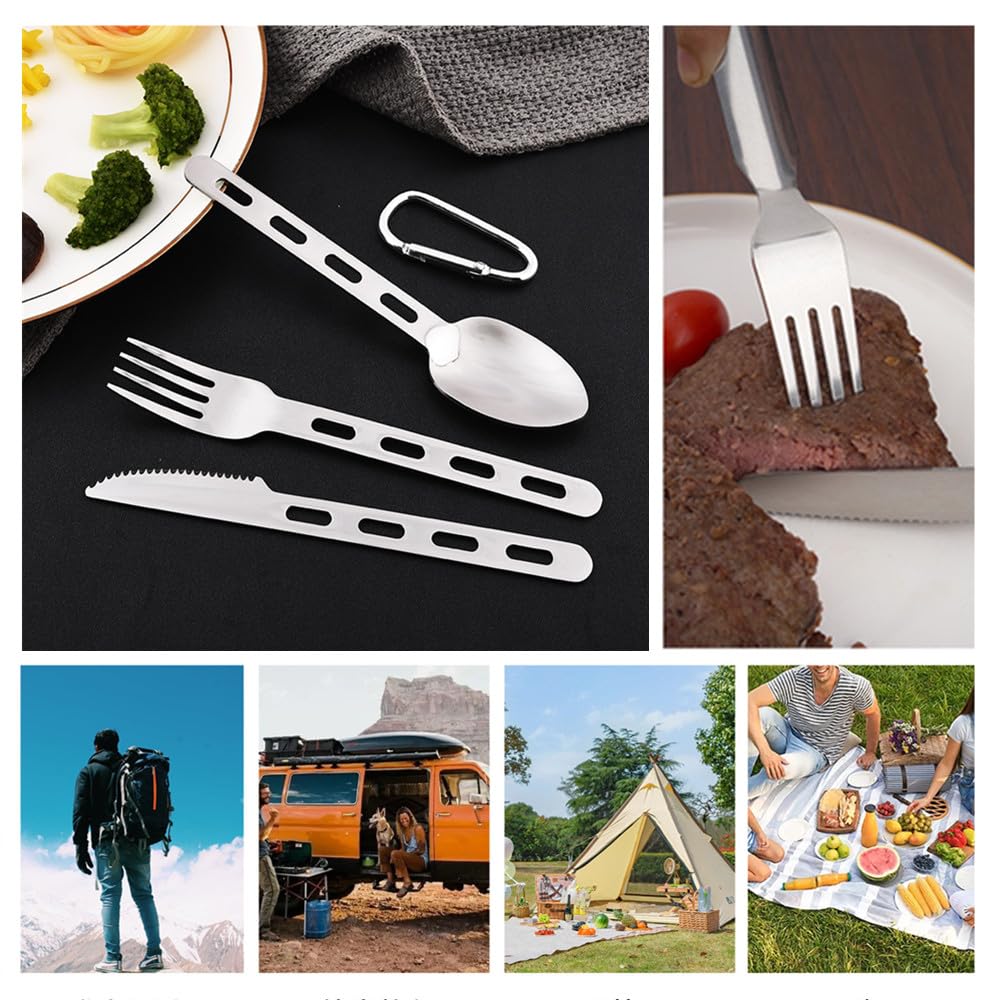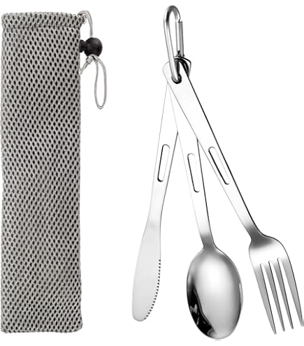 Idéal pour les voyages, les vols, le travail, l'école, Utilisable pour café, pâtes, jus et charcuteries. Un must pour la cuisine en plein air, les pique-niques, les excursions en famille, les randonnées et les dîners en dehors., 2., Couverts de housse en tissu lavable de couleur noire. Le design simple et élégant convient à tout style de cuisine. Es cómodo de llevar en una mochila, en una bolsa de escuela o en una caja de camping. Reutilizables: este es un juego de vajilla reutilizable ecológico, puedes decir adiós a los cubiertos de plástico desechables, y nuestros cubiertos son aptos para lavavajillas, no se oxida y se puede reutilizar durante mucho tiempo Description produit : Couverts de camping, set de couverts de camping, sac pour couverts, camping couverts, kit de couverts de voyage en acier inoxydable set couverts de camping couteau fourchette cuillère de camping Caractéristiques : Couteau : 1,8 x 16,5 cm., Fourche : 2,4 x 16,5 cm., Pelle : 15,8 x 3,7 cm., Couleur : argenté. Le set de couverts de voyage est un excellent choix pour les voyages, le travail, les repas en mouvement, le pique-nique, le camping, il est pratique à transporter dans un sac à dos, un sac d'école ou une boîte de camping. Nous vous proposons un choix varié d Design exquis : les couverts de camping sont hautement polis, avec des bords lisses et sans boucle de ceinture pour un rangement facile, le stockage améliore leur expérience, alimentaire et utilisé plus confortable. Utilisations multiples : set de couverts de camping un compagnon précieux pour la pêche, la chasse, le camping, la randonnée ou la randonnée. Léger et facile à transporter : cet ensemble de couverts réutilisables est portable et léger. Lot de 10 couverts de camping en acier inoxydable avec assiette, bol, tasse, fourchette, cuillère et sac à couverts, sac de rangement, léger pour le camping, la randonnée et les pique-niques Couvert Pique Niques CKANDAY 3 Pack Couvert Camping, 12 Pièces Voyage Couteau Cuillère Fourchettes Baguettes Et 3 étui De Transport, Argenterie Vaisselle Pour Pique-Nique Randonnée Table Cuisine, Rouge/Vert/Orange Couvert Portable Les 3 couverts peuvent se clipser ensemble en empilant la cuillère, la fourchette et le couteau et en pressant sur le bout du manche à l'endroit du trou. Vous... Matériaux de haute qualité : fabriqué en acier inoxydable de haute qualité, les couteaux et fourchettes sont résistants à la corrosion et à la chaleur.