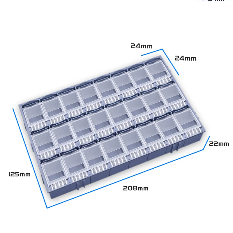 OriGlam Boîtier de rangement pour composants électroniques à 24 compartiments, boîtier SMT SMT, boîtes électroniques Kit de boîte de rangement de composants SMD SMT en plastique pour mini conteneur IC Fabriqué en matériau PP de haute qualité, non toxique, il est durable et résistant à la casse. Idéal pour ranger tous types d'articles, en particulier pour les appareils électroniques et les outils de réparation de montres 1 Ensemble = 9 Pièces Kit De Composants électroniques à Vis Description de Conteneur SMD 9 pièces/ensemble, Mini boîte de rangement pour composants électroniques SMT IC, étui à bijoux T8WE Veuillez vous référer à la première image envoyée, les autres images sont fournies à titre indicatif uniquement 1296 tout neuf et de haute qualité. OOTDTY Caractéristiques : Fabriqué en matière plastique IPS de haute qualité, non toxique, il est... Caractéristiques: - Matériau: IPS plastic - Nom de: DVOTERW - Numéro de Modèle: - - Origine: CN (Origine) - Type: BOX