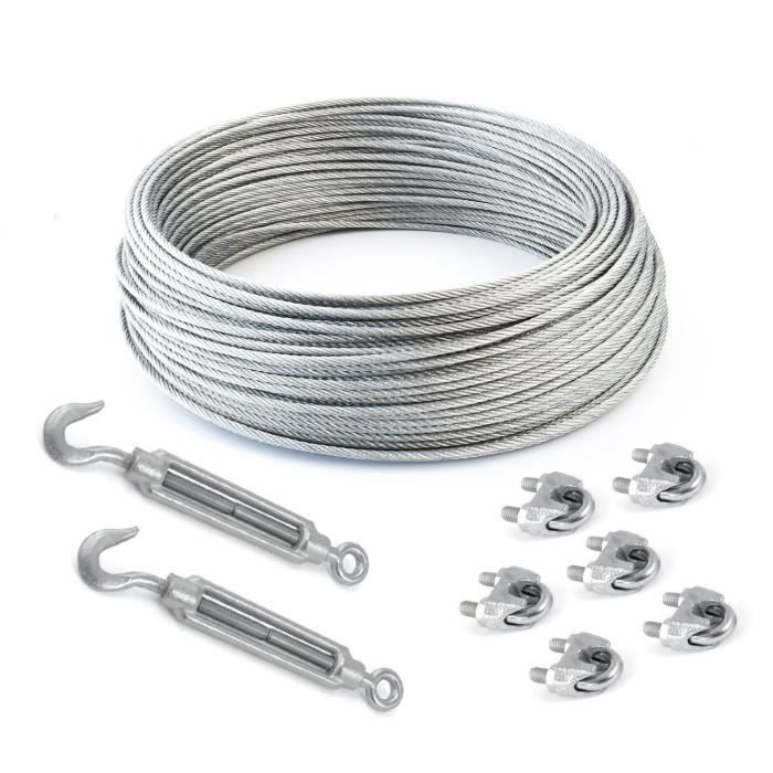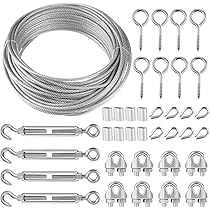 Lot de câbles métalliques pour plantes grimpantes 20 m/2 mm Sécurité et fiabilité : notre câble métallique en acier inoxydable pour plus de résistance et de durabilité, le fil d'acier inoxydable revêtu de PVC est plus résistant à la chaleur et au soleil que le revêtement en vinyle, les manchons de câble métalliques réduisent le frottement de la corde lors de l'installation et protègent la corde pour une plus longue durée de vie de la corde. Kit de câble en acier inoxydable de 20 m, 3 mm EN STOCK : Kits de Câble en Acier Inox, 20m Câble Acier Galvanisé, Kit de Câble Métallique avce Tendeur Oeil-crochet M5, Attaches pour Câbles Métalliques... (charge maximale selon l'application). Cable Métallique Pour Manutention Attaches De Câble Métalliques En Acier Inoxydable - Lot De 10 - Collier Cable Acier Inoxydable Câble en acier inoxydable de qualité supérieure avec revêtement en PVC : notre câble métallique de 2 mm d'épaisseur est en acier inoxydable 304 (7 x 7 brins) avec revêtement en PVC lisse. Nombreuses utilisations : notre kit de fil de jardin pratique pour les plantes grimpantes, vignes de vins, cordes à linge, balustrades de terrasse, fixations de voile d'ombrage ou charges légères jusqu'à 50 kg. Tout pour une installation immédiate. Pistolets à serre-câbles métalliques, pistolets à serre-câbles en acier...