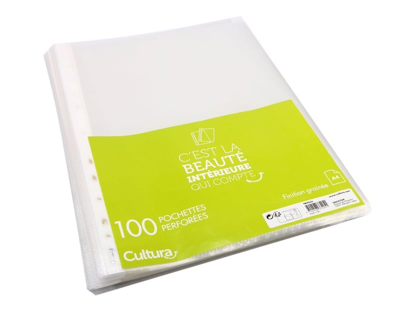 La ligne de trou est renforcée avec une bande de renfort en polypropylène blanc pour plus de résistance et de praticité. BATINO Lot de 100 pochettes perforées transparentes A4 en plastique solide 90 microns avec ouverture sur le dessus pour classeurs à anneaux Caractéristiques : Matériau de qualité supérieure. Lot de 100 pochettes perforées en plastique transparent A4 90 icrons... Nos protecteurs de papier sont parfaits pour garder les documents, les images, le matériel d'étude, les certificats contre les dommages et vous aider à organiser votre maison et votre bureau. Contenu : 100 pochettes perforées A4., Lot de 100 pochettes perforées : nos pochettes perforées A4 comprennent 100 pièces, nos protecteurs de feuilles de 23,5 x 30 cm avec 11 trous s'adaptent au papier de 21,6 x 27,9 cm et garderont vos papiers de format lettre standard en sécurité dans la plupart des classeurs ou dossiers. Fabriqué à partir de plastique recyclé à 90% (pré-consommation), audité et certifié par UL 100% recyclable et engagé dans un programme de compensation des émissions de CO² Caractéristiques : Format : pochettes perforées en polypropylène résistant A4., Pochettes perforées 90 microns., Couleur : transparent. A4 Lot De 100 Pochettes Perforées Transparentes Forat A4 Pochette Plastique Large utilisation : le protecteur de papier est un organisateur idéal pour garder des recettes, des partitions de musique, des photos, des documents importants, des certificats, etc. Pochette Plastique Transparente pas cher | Welcome Office Qualité supérieure : nos chemises en plastique A4 sont fabriquées en polypropylène de haute qualité, gardent votre papier loin de l'usure, idéales pour un rangement à long terme. La pochette perforée Leitz® permet de classer les documents sans les froisser. Protège-feuilles perforé Sans acide et Copy Safe (sans transfert d'encre sur le plastique). Pochettes en plastique transparent A4 Parfait pour une utilisation à l'école, au bureau et dans la vie quotidienne