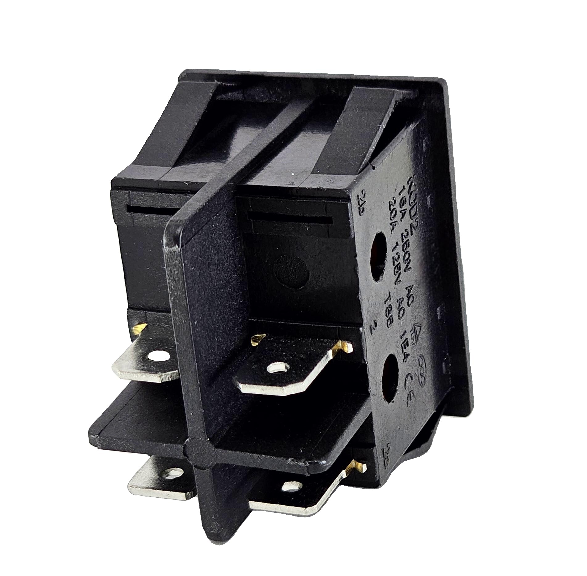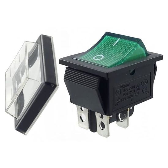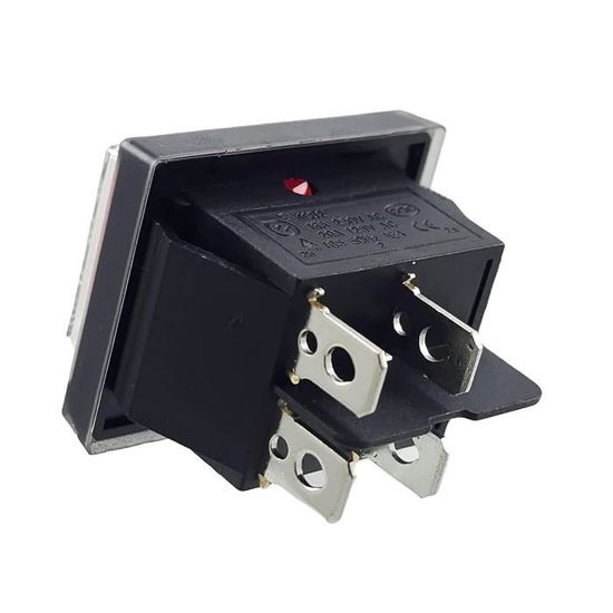 Interrupteur à bascule encastrable avec contacts à vis, 2 pôles (4 broches) 16 A 250 ~ Interrupteur noir vert éclairé Caractéristiques du produit : 2 pôles., 16 A 250 V. Fixation de cadre à un clic. Dimensions pour l'ouverture de montage, env., 28,5 x 21,9 mm. Interrupteur à bascule étanche lumineux OFF-MOM 3 contacts Robustes et économiques, les interrupteurs à bascule sont intégrés dans des appareils électriques pour commander la mise sous tension ou un circuit spécifique. De nombreuses variantes sont disponibles : fonctions électriques, couleurs, marquages sur touche, … En partenariat avec le fabricant d’interrupteurs RLEIL, tient les modèles les plus courants en stock, et propose des... Interrupteur à Bascule Universel Interrupteur à Bascule KCD4 Spécial For Poste à Souder 30A 250V Courant Interrupteur à Bascule électrique Avec des contacts à vis ou des connecteurs plats : 6,3 mm., Éclairé., CE, TÜV, CQC., Avec contacts à vis