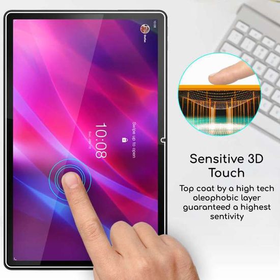 Qualité : Résistance maximale (norme 9H)., Design : Protections fines (0., 25-0., 3 mm), ultra transparentes. Description PRODUIT : Pack X2 films transparents en verre trempé, haute qualité, protections fines (0.25 - 0.3 mm) de résistance maximale (norme 9H). FONCTION : Protections anti casse, rayures et reflets pour un rendu optimal de l’image et une excellente réactivité tactile, absorbent le choc à la place de l’écran original en cas de... Remarque : Verres légèrement distants des rebords de manière à assurer une bonne adhérence, notamment sur les écrans arrondis. Fonction : Anti casse, anti reflets, rendu optimal de l’image et excellente réactivité tactile, absorption des chocs. Realme Pad EbestStar - Verre Trempé X2 Pour Lenovo Tab P11 Gen2, Vitre Protection, Film Anti Casse, Anti Rayures, Sans Bulles Verre Trempé Tablette 7 Pouces Protège écran PHONILLICO Lenovo Tab P11 Pro 1 Haute Transparence 2 Anti-Rayures 3 Composition Produit : Pack x2 films en verre trempé.