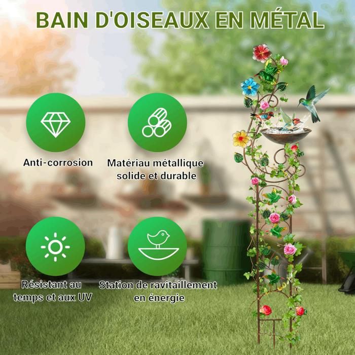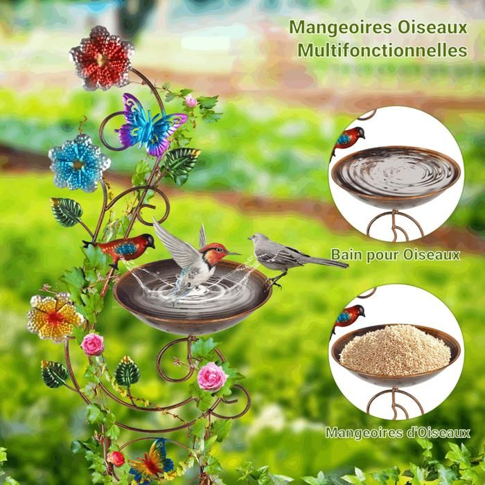 YYWMWM Bain d'oiseaux et mangeoires solaires pour oiseaux pour extérieur, bain d'oiseaux en métal avec pot de fleurs, bains d'oiseaux décoratifs avec papillon, décoration extérieure de jardin, balcon, pelouse, décoration de cour Robuste et durable : le bain d'oiseaux est fabriqué en métal robuste et de haute qualité avec un traitement de surface antirouille pour une utilisation durable. Cadeau idéal : le bain d'oiseaux multifonction peut être un excellent cadeau pour vos amis ou votre famille, il peut être un beau paysage dans le jardin, et c'est également un cadeau idéal pour les anniversaires, la fête des mères, la fête des enfants, Noël. Mangeoires à Oiseaux Solaires pour Mangeoires Oiseaux en MéTal à L... Bain pour oiseaux sauvages St Helens sur piédestal ornemental de jardin... Bain D'Oiseaux Avec Treillis Pour Fleurs Grimpantes, Mangeoire à Oiseaux, Abreuvoir Pour Oiseaux, Design élégant En Métal- Colibri yimeizhiguang Bain d'oiseaux en métal de 116,8 cm pour l