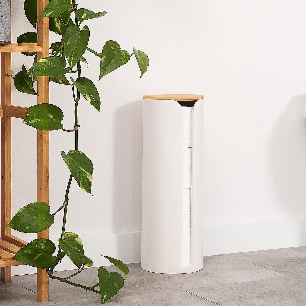 Apportez élégance et praticité à votre salle de bain avec le porte‑papier Bellwood d’Umbra. Ce modèle autoportant associe une base pour rouleau en plastique recyclé et un cadre en bois renouvelable. Il peut accueillir jusqu’à trois rouleaux, garantissant une réserve à portée de main. Son design minimaliste, avec un arceau élégant et une finition blanche mate, s’intègre... Améliorez vos essentiels de salle de bain avec le porte-papier toilette Bellwood, conçu pour la forme et la fonctionnalité. Le design dispose d'un profil compact qui stocke jusqu'à trois rouleaux de taille normale ou jumbo, vous assurant d'avoir toujours une sauvegarde à portée de main. Umbra Accessoires De Salle De Bain - Shoppez 9 produits à dès 11,00 Serviteur Wc Umbra Bellwood Porte-Papier Toilette Avec Compartiment De Meuble Papier Wc Fait partie de la collection Bellwood : fait partie de la collection populaire Bellwood, se marie bien avec l'étagère murale Bellwood, l'organisateur Bellwood, l'étagère de toilette Bellwood et plus encore Ne vous laissez pas berner par les produits Copy-Cat. Porte-papier toilette et rangement : dispose d'un rangement intégré pour les rouleaux de papier pour cacher et protéger les rouleaux supplémentaires; peut contenir jusqu'à 3 rouleaux de taille géante Design moderne et minimaliste : ce support de papier toilette moderne présente des accents de bois véritable et une réserve blanche mate, ajoutant une touche moderne à un accessoire de salle de bain indispensable Son plateau intégré peut être utilisé pour votre téléphone, clés, plantes, désodorisants et plus et sa structure légère et autoportante le rend facile à déplacer, parfait pour s'adapter à n'importe quelle disposition de salle de bain. Relaxdays Porte-papier de toilette autonome, en bambou, pour 3 rouleaux... Fabriqué à partir d'un mélange de bois renouvelable et de plastique recyclé, il est conçu dans un souci de durabilité.