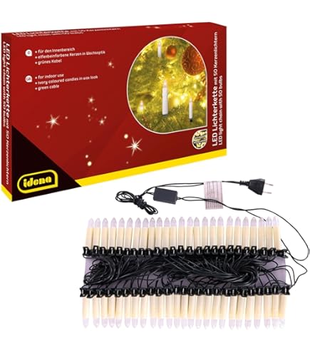 Bougies sans risque d'incendie pour une ambiance de Noël sur simple pression d'un bouton Couleur de lumière romantique : blanc chaud • 20 bougies LED couleur crème avec cosses vertes • Avec des LED à économie d'énergie et extrêmement durables Jusqu'à 80 % de consommation d'énergie réduite par rapport aux ampoules incandescentes. Guirlande LED avec lampes bougies, par Lunartec 20 lampes imitation bougie de couleur cire Sans risques d'incendie : le LED ne chauffe pas Lumière de couleur Blanc Chaud Puissance : 4 W Avec pinces à branches de couleur verte Alimentation secteur intégrée (intérieur uniquement) Hauteur de chaque bougie : 7 cm Longueur totale du câble : 6,70 m Code GTIN/EAN : 4022107164948 Avis Couleur de la lumière romantique : blanc chaud - 20 bougies LED de couleur crème avec bornes vertes - Avec LED à économie d'énergie et extrêmement durables... Lampe Bougie Guirlande Lumineuse Intérieur GENERIQUE Guirlande Imitation Bougie - 20 Guirlande Bougie Avec LED économes en énergie et extrêmement durables. LUNARTEC Bougie Led - Comparer les prix et offres pour LUNARTEC Bougie 20 lampes imitation bougie de couleur cire • Puissance : 4 W • Hauteur de chaque bougie : 7 cm Bougies conçues avec une distance de lumière blanche chaude : 20 cm - Hauteur de la bougie : 7 cm - Câble d'alimentation : 2 x 145 cm - Longueur totale : environ 670 cm - Facile à fixer aux branches : Les câbles et les pinces sont verts. Sapin de Noël lumières féériques - Également pertinent ou approprié pour: Chaîne de Noël, Noël arbre, Noël, éclairage, Sapin de Noël, forme de bougie, lumières, petit, Avènement, courant