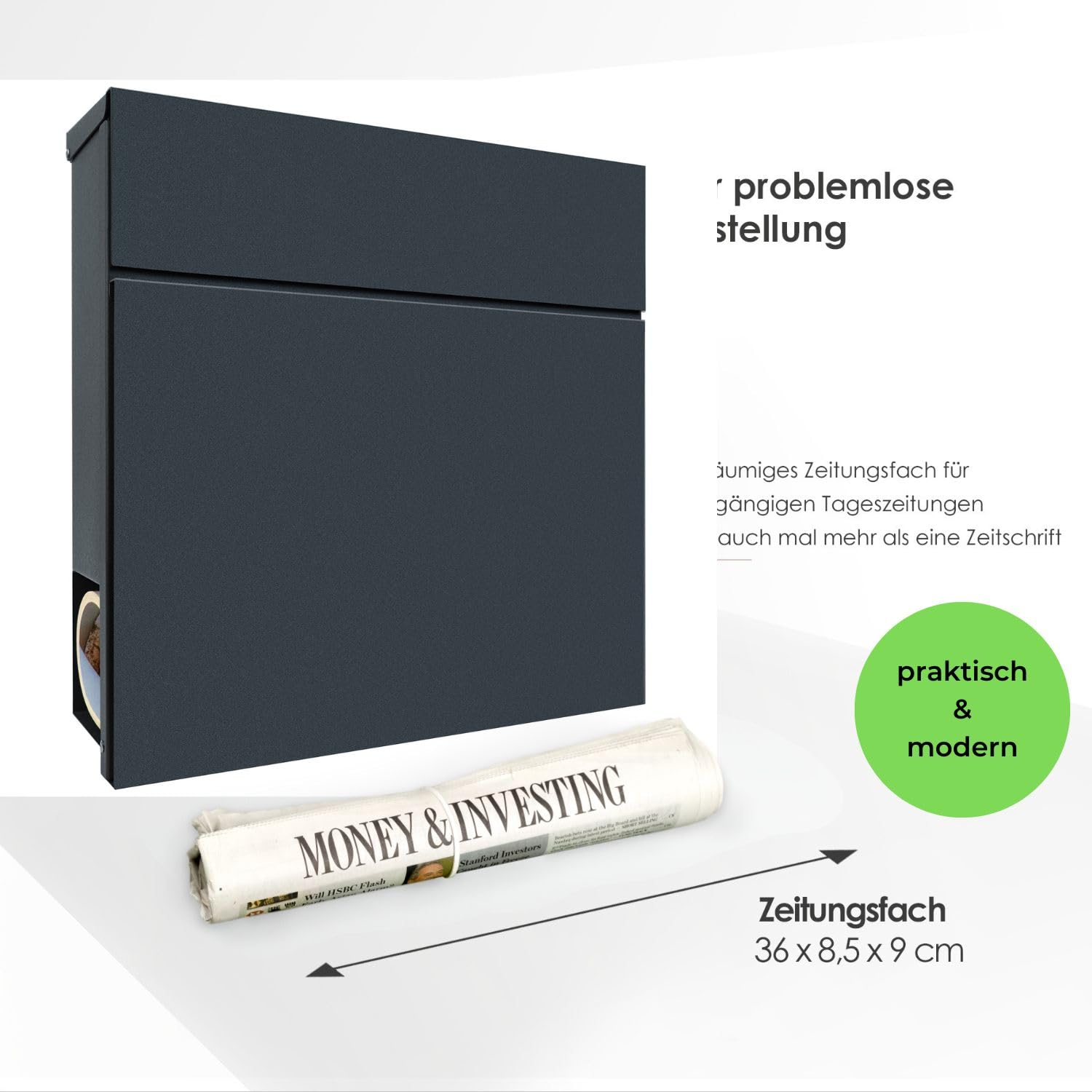 Boîte aux lettres de clôture - Ouverture murale - C4 - Extrémité arrière - Double fil (noir mat RAL 9017 Boîte aux lettres encastrée - Noir mat - Avec ouverture au mur Plaque avant : 305 x 135 mm (H x l) - Fente : env. 245 x 37 mm; Idéal pour l'intégration dans votre maçonnerie La boîte aux lettres murale en noir mat RAL 9017 Durable, robuste et résistante aux intempéries - idéale pour un usage quotidien. Le colis inclut la boîte aux lettres ainsi que 3 clés correspondantes pour... Gris Anthracite Boîte Aux Lettres - Noir Mat - Anthracite - Gris Mat - C4 260-420 Boite Aux Lettres Plaque avant : 305 x 135 mm (H x l) - Fente : env., 245 x 37 mm Pour maçonnerie en tôle d'acier galvanisée., Livré avec 3 clés.
