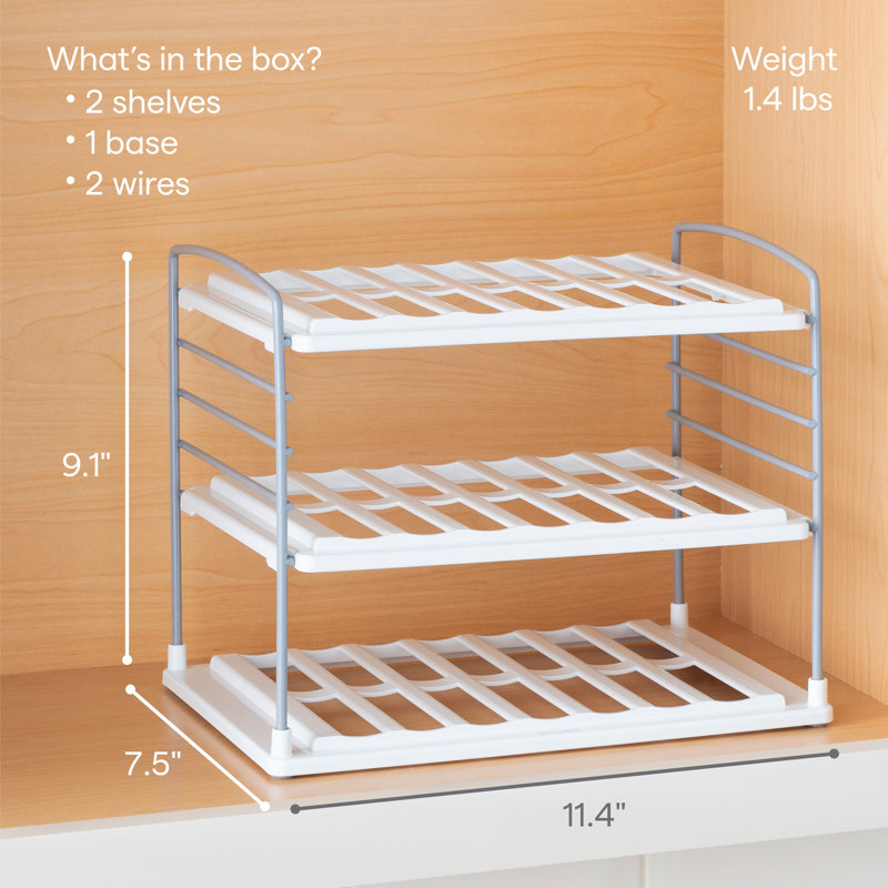 De la collection Organizing Hero de YouCopia, l'organisateur de bouteilles UpSpace le plus vendu est maintenant repensé avec un look frais et (même) une meilleure fonctionnalité. Bar Étagère De Rangement Pour Gobelets En Papier Distributeur D YouCopia® Boîte de rangement YouCopia® UpSpace ™ pour le rangement de... Maximisez l'espace vertical dans vos armoires en rangeant les bouteilles horizontalement sur le côté. Pas de glissement, pas de surprise : les pieds doux et antidérapants maintiennent l'organisateur en place et les étagères anti-roulis maintiennent les bouteilles en place. Les étagères réglables avec deux réglages de hauteur vous permettent de choisir la bonne hauteur de dégagement pour toutes vos bouteilles d'eau et tasses de voyage. Vous manquez d'espace dans l'armoire ? Il suffit de placer les étagères plus près les unes des autres pour un ajustement plus serré. Installation rapide : montage facile, en une minute sans outils. ORGANISING HERO : un organisateur le plus vendu avec une qualité fiable et des détails de design haut de gamme que vous ne trouverez nulle part ailleurs. Durable : fils d'acier solides et étagères renforcées pouvant supporter jusqu'à 9 kg. Porte-Gobelets Élégant, 6 Porte-Gobelets Avec Plateau, Organisateur De... Bottle Mug And Plate Organizer 2-Piece Set YouCopia UpSpace Organiseur De Bouteille D'eau Et De Tasse De Voyage, étagère De Rangement Réglable Pour L'organisation De La Cuisine, 3 étagères De Large Water Bottle Organizer Conçu pour s'adapter : mesure 18,3 cm de profondeur x 42,2 cm de large x 29,7 cm de haut pour s'adapter aux armoires standard; fabriqué avec des fils en plastique recyclé et en acier de haute qualité, sans BPA, couleur blanche mouchetée.