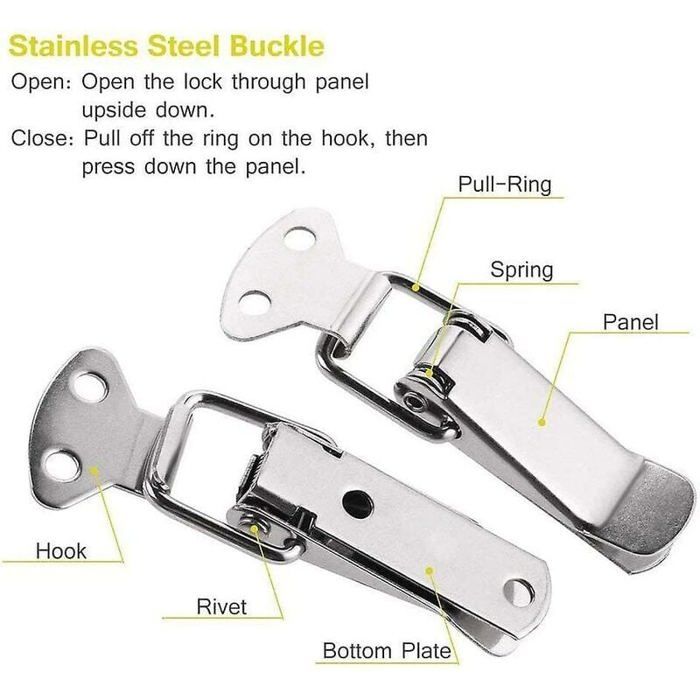 Spécifications: Matériau: Acier inoxydable Couleur: Noir Taille: 47 * 21mm Le forfait comprend: 10 * Loquet à bascule à ressort Veuillez permettre une erreur de 1 à 3 cm en raison d'une mesure manuelle. Nous ferons de notre mieux pour résoudre le problème pour vous. Matériel: Nos loquets à genouillère à ressort sont en acier inoxydable., Taille: 47 * 21mm Gativs 10 Pièces Moraillon du Loquet Loquet à Ressort EN STOCK : 10 Pièces Loquet à Ressort Bascule Acier Inoxydable, fermeture à levier, Loquet à Bascule,fermoir, pour coffre à outils boîte de rangement... Verrou De Pontet Gativs 10 Pièces Moraillon Du Loquet Loquet à Ressort Loquet Bascule Verrou Boite Aux Lettres Facile à utiliser: La conception à ressort vous permet d'ouvrir et de fermer facilement ce loquet à ressort.