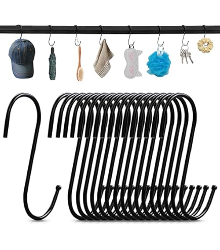 Les crochets sont faciles à installer sur n'importe quelle étagère ou étagère sans aucun outil. Entretien : essuyer avec un chiffon humide., 1., Crochets en S robustes noirs en forme de S pour suspendre des poêles, des poêles, des ustensiles de cuisine, des sacs, des serviettes, des plantes , 2., Crochets en forme, largement utilisés dans les placards, cuisines, salles de bains, salles de stockage, garages, ateliers, bureaux. Parfait pour suspendre des shampooings, des savons, des nettoyants pour le corps, des rasoirs et plus encore à travers les paniers ou le sac de douche. DINGEE Lot De 8 Crochets En S Extra Larges De 30,5 Cm Lot de 6 crochets en S extra larges pour suspendre des plantes, 40,6 cm/30,5 cm de long, en métal argenté, résistant à la rouille, crochet extra large pour... Lot De 6 Crochets En S Extra Larges Et Résistants Pour Le fil d'acier épais de 0,5 cm de diamètre rend ces longs crochets solides et robustes. Ils peuvent être utilisés à la fois en intérieur et en extérieur et pour un certain nombre de choses : utilisez-les dans la cuisine pour accrocher des casseroles, des ustensiles ou même des tasses à café ; dans la salle de bain pour accrocher des serviettes ; dans le garage pour organiser vos outils ; ou emportez-les à l'extérieur pour accrocher des plantes Les crochets s'accrochent facilement aux objets existants sans avoir besoin de clous, de vis ou d'adhésifs. Parfait pour le jardinage des plantes suspendues, des mangeoires à oiseaux et des décorations de jardin. Fabriqués en acier inoxydable durable, ces crochets sont solides et sûrs, de sorte que vous pouvez accrocher des articles plus lourds sans craindre qu'ils tombent ou s'endommagent., 4., Taille : longueur 30,5 cm, diamètre 0,5 cm, 8 crochets en S très résistants , 5., L'une des grandes choses de nos crochets robustes est qu'ils ne sont pas limités à une zone spécifique de votre maison.