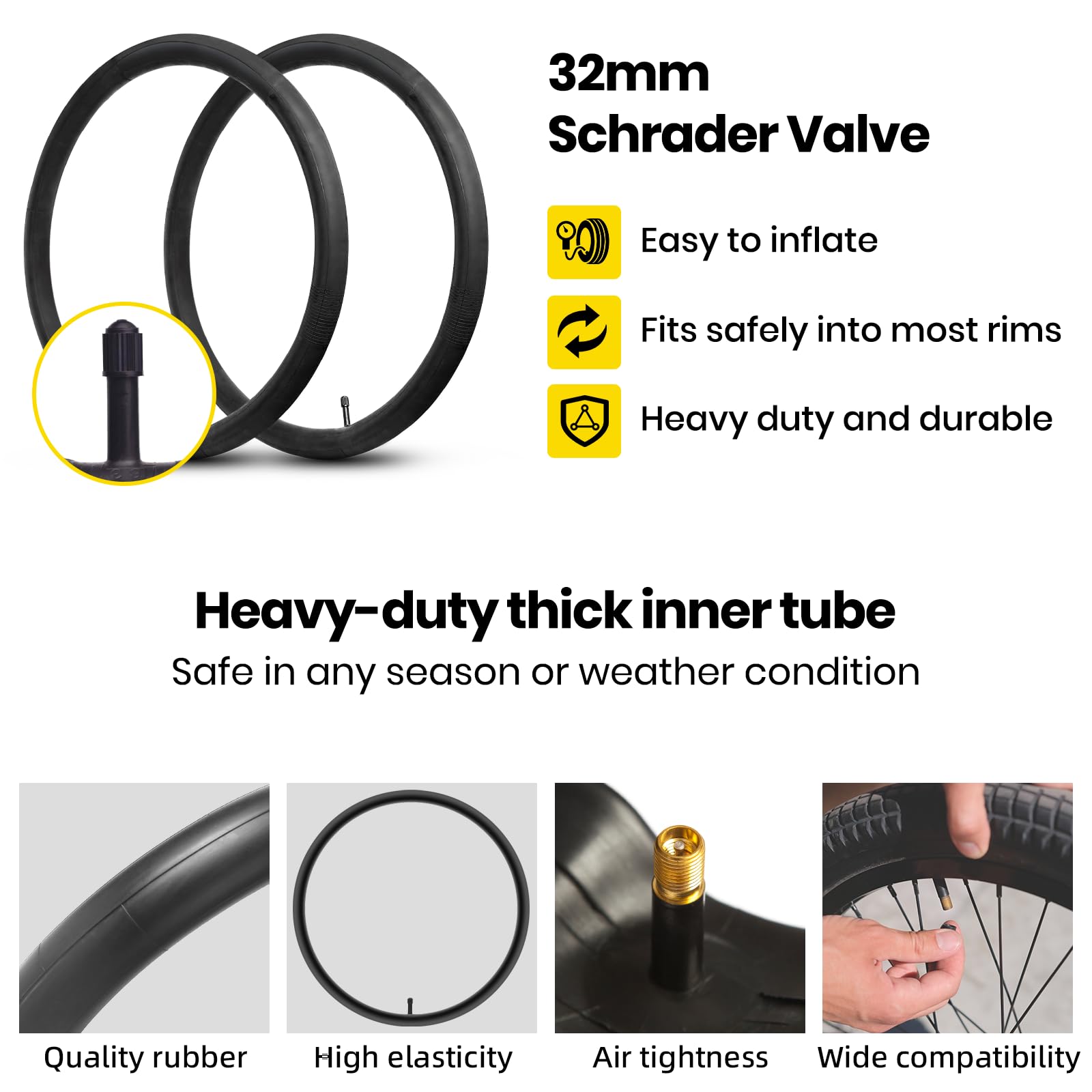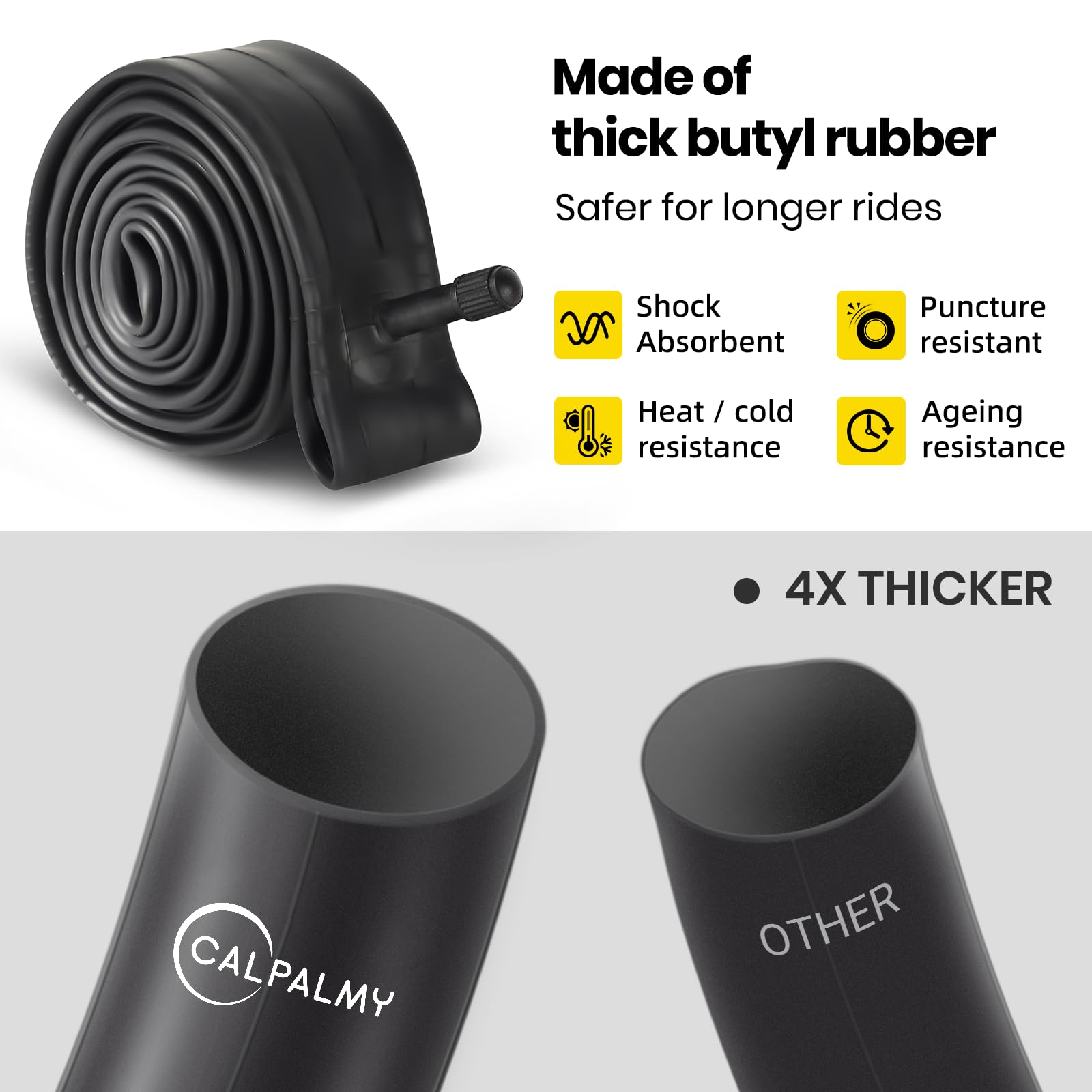 Eastern Bikes Chambre à air de qualité supérieure 73,7 x 1,75/2,125 : Gardez votre conduite fluide et sans soucis avec la chambre à air Eastern Bikes de qualité supérieure de 73,7 x 4,4 cm. Que vous soyez sur un terrain accidenté ou que vous naviguiez en ville, ce tube est là pour vous. Options de valve : choisissez entre les types de valves Schrader et Presta pour répondre aux besoins de votre moto. CalPalmy Lot de 2 chambres à air de rechange pour vélo de route et VTT 73 Embout de gonflage en cuivre pour pompe valve Dunlop,Schrader,Presta et... Eastern Bikes Chambre à Air De Vélo De Qualité Supérieure De 73,7 X 4,4 Construction robuste : fabriqué à partir de caoutchouc butyle de haute qualité pour une meilleure rétention d'air et une résistance à la perforation.