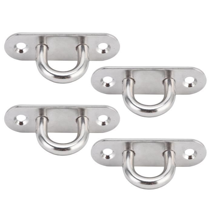 Matériau : acier inoxydable., Dimensions : 39,5 x 21 mm. Épaisseur de la plaque : 3 mm. Lot de 4 plaques à œillets en acier inoxydable 304 très Crochet Pour Plaque à Oeillet Lot De 4 Crochets Robustes En Acier Inoxydable Pour Fixation Au Plafond Crochet De Plafond En Acier Caractéristiques principales : L'œillet de crochet de plafond est adapté pour les plafonds en bois, les plafonds en béton, les plafonds en ciment, les murs en brique, les chaînes, les plantes suspendues, etc. Contenu de l'emballage : 4 crochets de plafond avec vis <br/Ce kit d'œillets et de mousquetons sont adaptés pour les plafonds en bois, les plafonds en béton, les fixations murales, également utilisés dans les petits yachts et bateaux. Convient pour les plafonds en bois, les plafonds en béton, les plafonds en ciment, les murs en brique, les chaînes, les plantes suspendues, etc. Livré avec des vis et facile pour une installation rapide. Garantie Si vous rencontrez des problèmes, n'hésitez pas à nous contacter. Solide, durable et polyvalent. Convient pour l'intérieur et l'extérieur. Peut être monté au mur ou au plafond. Dimensions du plateau de lit : 60 x 20 x 3 mm ; crochet J Diamètre de l'arbre : 6 mm. Matériau : acier inoxydable 304 de haute qualité et anti-rouille. Contenu de la livraison : 4 crochets de plafond et 8 vis et ancres Optifix Fixation Oeillet A Visser Lot De 4 Plaques à U0153illets En Acier Inoxydable 304 Pour Fixation Murale Et Plafond - Crochets En Forme De U Oeillet Inox... <br/Chaque support mural peut supporter une charge maximale de 272,2 kg, idéal pour accrocher une corde de yoga, un gréement de bateau, un ventilateur de plafond, un sac de sable de boxe, un hamac, des plantes, des lumières ou tout autre objet lourd. Contenu de l'emballage : 4 crochets de plafond à œillets.