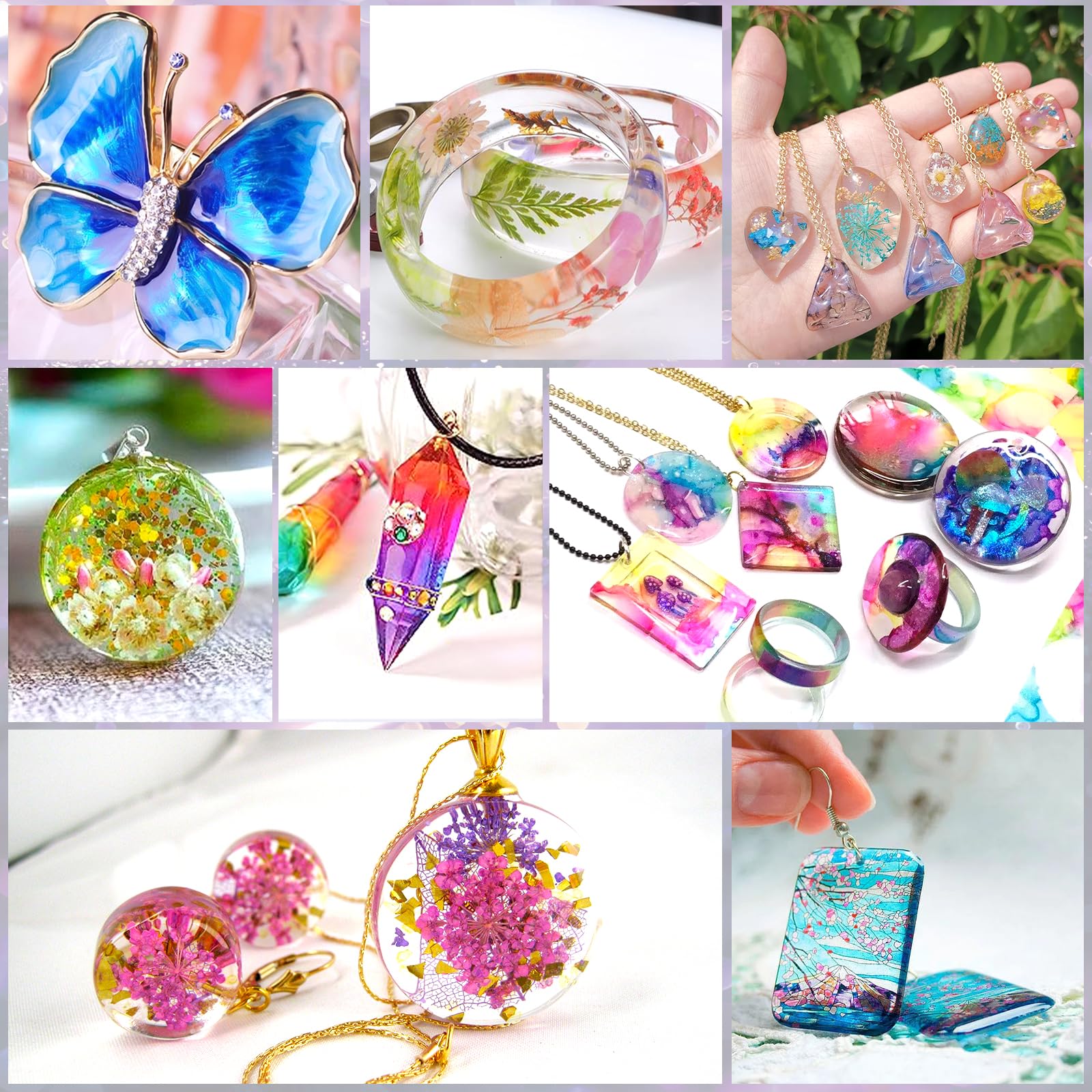 Profitez du charme de l'art en résine, une façon détendue et agréable d'interagir avec la famille et les amis. Efficace et pratique : facile à utiliser, pas besoin de mesurer, modulation proportionnelle, temps de séchage court, les deux côtés (avant et arrière) ne prennent que 1 à 3 minutes avec la lampe UV 12 W. Vous pouvez penser, créer ensemble et profiter du processus de fabrication chaleureux avec votre famille, vos enfants et vos amis. Libérez votre créativité avec ce kit de fabrication de bijoux en résine UV tout-en-un ! Il comprend 3 résines UV de 100 g, une lampe UV haute puissance de 30 W, des moules en silicone de qualité supérieure, 12 paillettes éclatantes, des fleurs séchées, des autocollants, du ruban adhésif en résine et bien plus encore Largement utilisé : La résine UV dure peut être utilisée pour la fabrication de petits objets, comme des bijoux, des décorations artisanales, des moulages et... Uv Resin Kit De Résine UV Avec Lampe, Résine UV Transparente 200g Et Durcissable Sous Lumière UV, Pour La Fabrication De Bijoux Et Les Projets Artistiques. Facile à Utiliser, Faible Odeur, Non Toxique Kit Résine Uv La résine UV peut montrer votre imagination et votre créativité. Résine UV 300 g Kit de résine UV amélioré, type dur, résine Équipé d'un couvercle professionnel, facile à remplir en résine. Kit de résine UV avec lumière : kit économique de résine UV pour les amateurs d'artisanat. Après durcissement, il est complètement inodore et transparent, anti-rayures, non collant, résistant au jaunissement, veuillez les porter et les utiliser en toute confiance.