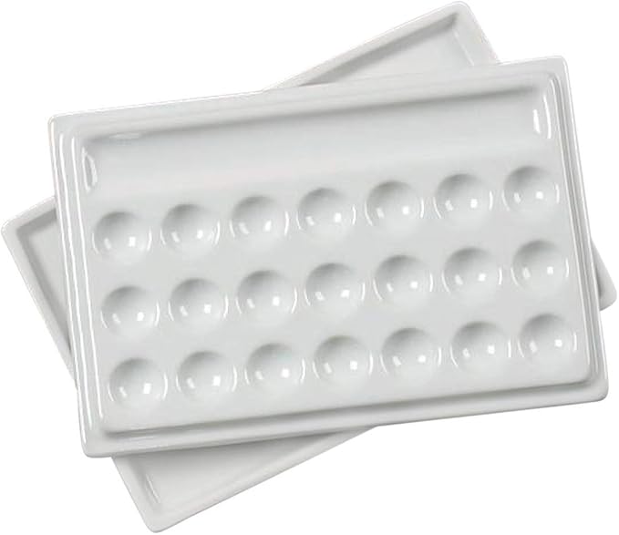 Trous d'angle pour contenir 8 pinceaux Il cherchait une surface qui maintiendrait les couleurs humides plus longtemps et, contrairement au plastique, ne causerait pas les perles et la séparation des aquarelles. Tout cela a été accompli avec son design de palette signature QUELS MATÉRIELS POUR DÉBUTER À L'AQUARELLE Grand espace avant pour plus de couleurs ou de vitrage flaque d'eau Palette Porcelaine Aquarelle Palette D'aquarelle En Porcelaine Palettes De Peinture Blanche D Large Ceramic Watercolor Principaux points forts · 20 puits extérieurs pour la couleur et une grande zone de mélange · Grand espace avant pour plus de couleurs ou de vitrage flaque d... Avec plus de 30 ans d'expérience en peinture, Tom Lynch s'est rendu compte qu'il avait besoin de quelque chose de plus robuste, une palette avec un peu plus de poids pour éviter de glisser et de glisser. Il cherchait une surface qui maintiendrait les couleurs humides plus longtemps et, contrairement au plastique, ne causerait pas les perles et la séparation des aquarelles.
