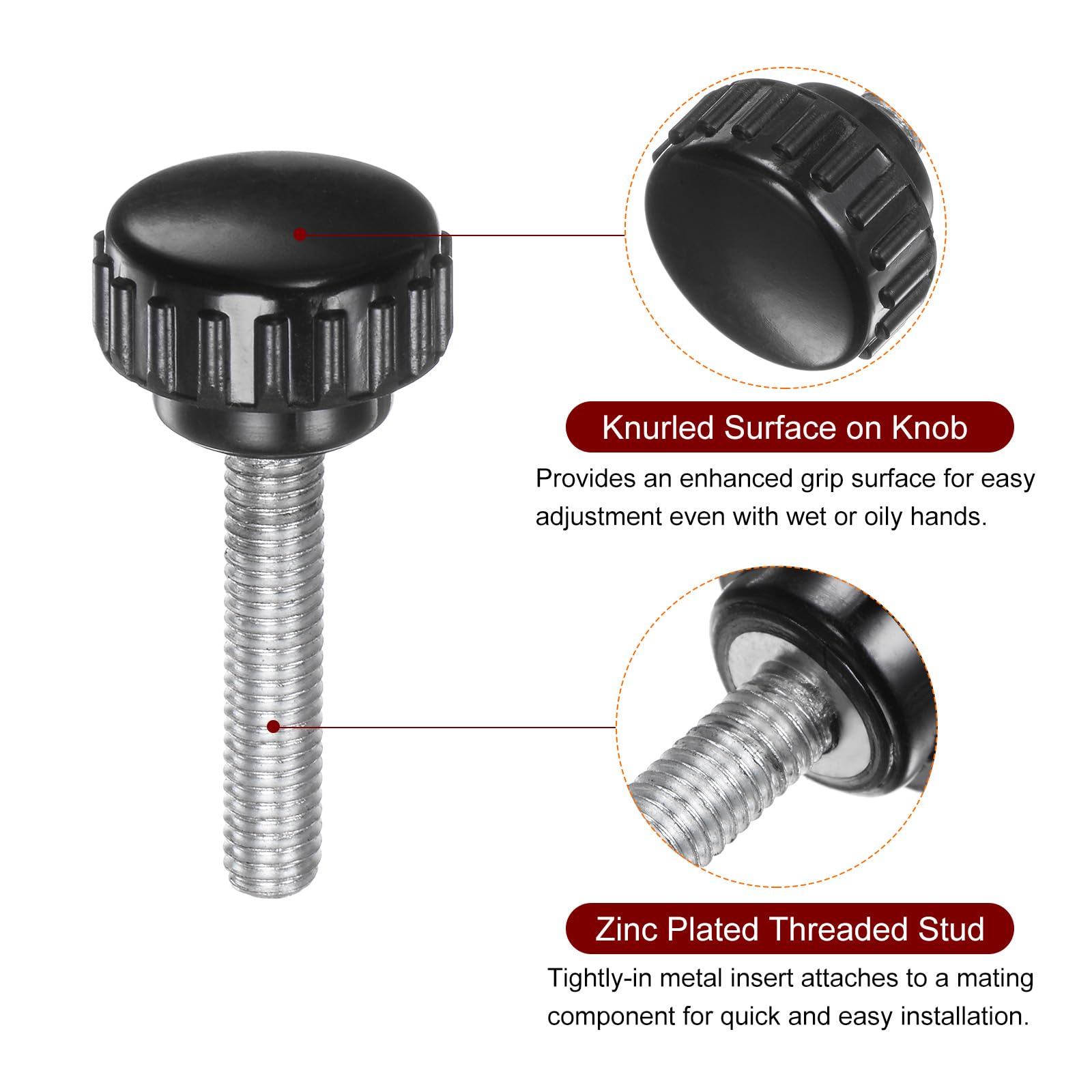 Caractéristiques - La surface moletée du bouton offre une surface de préhension améliorée pour un ajustement facile, même avec les mains mouillées ou grasses. Matériau : les boutons de serrage en plastique thermodurcissable offrent une durabilité, une excellente résistance, l'usure, une résistance à la chaleur et aux produits chimiques, et une isolation électrique. Elle permet de fixer et de régler facilement des éléments tels que des vis, des écrous ou des boulons de taille M6. Grâce à sa conception ergonomique, elle offre une prise en main confortable et facilite le serrage ou le desserrage des pièces Insert métallique en acier plaqué serré permettant un ajustement. Tournez le bouton dans le sens des aiguilles d'une montre à la main pour vous assurer qu'il est bien fixé. L'insert en acier plaqué serré permet un réglage sans outils supplémentaires. Description du produit Nombreuses utilisations : les poignées de serrage offrent une prise en main sûre et un réglage ultime et un contrôle de serrage, faciles à utiliser. Application : les poignées de serrage offrent une prise en main sûre et un réglage ultime et un contrôle de serrage, faciles à utiliser. Thermodurcissable et plaqué zinc : les boutons de serrage en plastique thermodurcissable offrent durabilité, excellente résistance, résistance à l'usure, résistance à la chaleur, résistance chimique et isolation électrique. Accessoires de tour - Une grande variété d'accessoires de tour sont fournis: Boutons sphériques, boutons étoile, boutons moletés, poignées à levier, poignées tournantes, volants, etc. Ils sont polyvalents et s'adaptent à votre tour. Accessoires de tour - Une grande variété d'accessoires de...Achetez sourcing map Lot de 6 boutons de serrage moletés M6...Une grande variété d'accessoires de tour sont fournis Assurez-vous d'utiliser la bonne taille de bouton de boulon. Bouton à Bord De Serrage Sourcing Map M4 X 14mm Filetage Mâle Bouton Serrage Molette Molette M6 Bricolage Ils sont polyvalents et s'adaptent à votre tour. Convient pour les tours, les perceuses, les scies, les machines d'emballage et de travail du bois, les équipements d'impression et d'instruments, les équipements alimentaires et industriels. Remarques : assurez-vous d'utiliser la bonne taille de bouton de boulon. Accessoires de tour - Une grande variété d'accessoires de tour sont fournis: Boutons sphériques, boutons étoile, boutons moletés, poignées à levier, poignées tournantes, volants, etc. Lot De 30 Ventouses Avec Filetage Et écrous Moletés 45 Mm Transparentes Pour Voiture Camping Vitre Pare Soleil 88725886