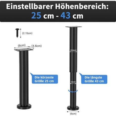 UTILISATION LARGE : les pieds de support rétractables ne conviennent pas seulement aux lits, mais aussi aux armoires, canapés, tables, tabourets, chaises, meubles de télévision, etc. DESIGN ADJUSTABLE : Le design pivotant et ajustable fournit plus d'adaptabilité et de stabilité, il suffit de tourner doucement pour ajuster la hauteur des pieds du meuble afin de répondre à vos besoins d'installation. MATÉRIAU DE HAUTE QUALITÉ : Ce pied de support télescopique réglable est fabriqué en métal de haute qualité et d'excellente qualité, il a une forte capacité de... Pieds De Nivellement Pour Meubles Pied De Meuble VOCOSTE 180mm-195mm Inox Pieds Nivellement Meuble Réglable Pied Patin Meuble Jambe Pied Table Chaise 2Pcs - Bricolage Pieds Ajustables Pour Meubles MOB-IN Pieds réglables Will - Jeu de 2 Pieds réglables pour Meuble de Salle de Bain- Métal Satiné FACILE À INSTALLER : Nos pieds télescopiques sont livrés avec des trous pré-percés qui vous permettent d'attacher rapidement les pieds de meubles à vos meubles pour tous les niveaux d'habileté.