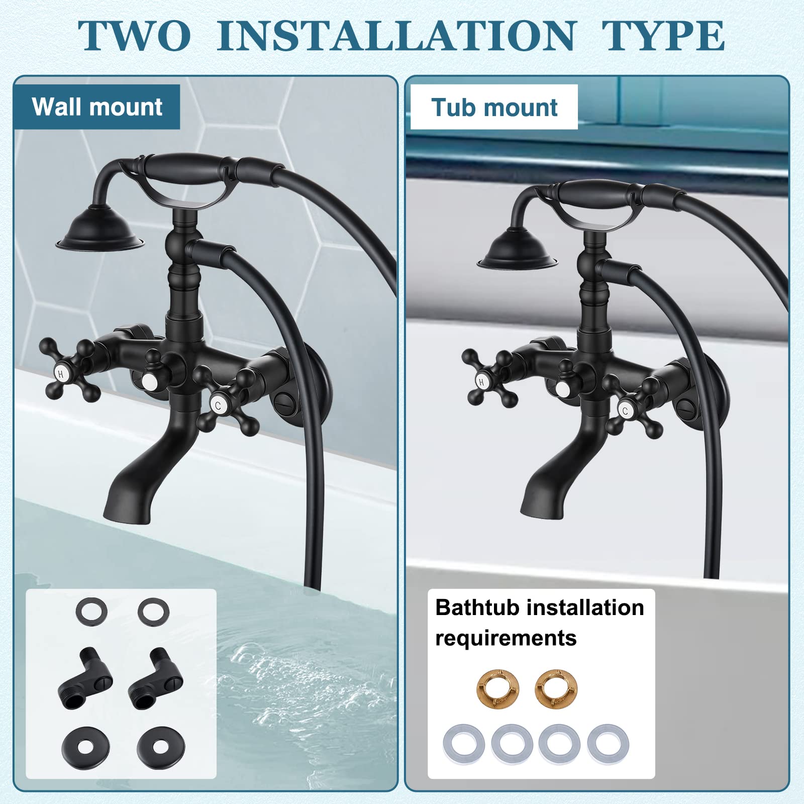 Midanya Clawfoot Robinet de baignoire en nickel brossé avec Le corps et les poignées du robinet en laiton assurent la fiabilité. Débit d'eau et température faciles à régler. Contactez-nous pour tout problème et nous le résoudrons immédiatement. Robinet Baignoire Midanya Clawfoot Robinet De Baignoire En Nickel Brossé Avec Douchette à Main Fixation Murale 2 Poignées Croisées Avec Bec Verseur Style Victorien Vintage Téléphonique 3–9 Pouces Centre Réglable Robinet De Baignoire Avec Douchette Design durable : pas de rouille ou de fuite et centres réglables. Installation : facile à installer avec support mural, type d'installation à deux trous, la distance entre le trou d'installation peut être réglable entre 7,6 cm et 22,9 cm avec adaptateur à bras pivotant. Comprend une douchette à main, une fonction unique, pratique pour rincer la baignoire ou simplement rincer après un bain. Mouvement fluide de la poignée, flux d'eau et température faciles à régler. Convient pour une utilisation durable. Mitigeur baignoire mural NIL en laiton chromé-Chromé-Avec douchette à... Matériau : construction en laiton massif, 2 sorties d'eau, cascade et douchette à main, jusqu'à vous.