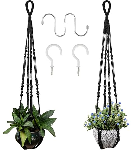 Contenu : 2 suspensions pour plantes., Pourquoi nous choisir : 1., Le matériau est en coton respectueux de l'environnement et respectueux de l'environnement., 2., Tapisserie qui s'adapte parfaitement à n'importe quel espace, style ou occasion., 3., Moyen parfait pour mélanger un peu de style ferme, hippie et bohème chic à votre décoration d'intérieur., 4., Durable, robuste, s'accroche sur une cheville en bois véritable, ce qui le rend solide et durable., 5., Créez un point focal dans les salons, ou au-dessus de votre cheminée, ou accrochez-le au bureau à l'arrière de votre bureau ou de votre fenêtre., 6., Les frontons muraux en macramé tissé sont incroyablement adaptables et peuvent facilement transformer une pièce simple et lui donner un look contemporain., 7., Un cadeau mémorable ou pourrait être la fierté des propriétaires. En tant qu'article unique de Bohême moderne, design unique et travail soigné à la main vous offrent une décoration murale de bonne qualité. Avec un style bohème unique, il rendra vos adorables plantes plus fantaisistes qu'instantanément vous les mettez sur votre table. Lot De 2 Cintres pour Plantes, Panier De Jardinière Suspendu en Macramé Macramé tissé à la main : notre suspension pour plantes en macramé est fabriquée à partir d'un savoir-faire 100 % fait main. Avec un style bohème unique... Suspension Fleur Lot De 2 Cintres En Macramé Pour Plantes Aériennes - Pour Intérieur Et Extérieur Macramé Mural Macramé tissé à la main : notre suspension pour plantes en macramé est fabriquée à partir d'un savoir-faire 100 % fait main. Installation facile : nos pots de fleurs muraux sont vraiment faciles à utiliser pour tout le monde ; que vous l'utilisiez pour la première fois ou que vous les utilisiez déjà ; il suffit d'étendre les pieds des cordes, de mettre dans le pot de fleurs de votre choix à l'intérieur et de l'accrocher où vous le souhaitez, le tout prêt à l'emploi Créez une atmosphère relaxante dans la pièce. Point de charme : créez une atmosphère naturelle. Large application : avec un design unique et une fonction pratique, le cintre en macramé est non seulement parfait pour mettre des pots de fleurs, mais également adapté pour la salle à manger, la chambre, la terrasse, le jardin et beaucoup d'autres décorations intérieures et extérieures.