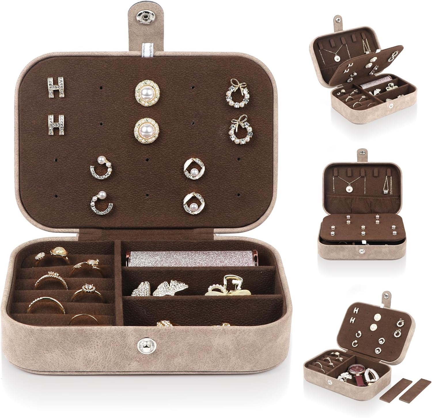 Cuir synthétique senior : fabriqué avec du cuir PU de haute qualité à l'extérieur, doublé de polaire doux, coutures bien faites et miroir intégré, cette boîte à bijoux a un look moderne mais elle est robuste et durable, garde vos bijoux organisés et élégants Marque : AYUOKER Matériau : cuir synthétique., Style : moderne. Utilisation recommandée du produit : collier, bague, boucles d'oreilles. Boîte à Bijoux Homme de Voyage en Cuir | Salle Des Coffres Boite A Bijoux Scarlett Coffret Organisation Bijoux Miroir Compact Boîte à Bijoux Voyage Homeanda - Cuir Synthétique - Miroir Intégré - Organisation Optimale - Marron Coffret Bijoux Portable Cdiscount Bijoux Voyage Les doubles fermetures éclair robustes garantissent un rangement sûr, pratique à mettre dans votre valise lors des week-ends de camping ou des voyages d'affaires sans endommager vos bijoux. Un cadeau attentionné pour elle : avec son look classique et sa doublure en velours luxueuse, notre organisateur de bijoux de voyage marron est un cadeau que chaque femme adorera, et le cadeau parfait pour Thanksgiving, les anniversaires, les remises de diplômes, la fête des mères et la Saint-Valentin. Design classique de rangement de voyage : taille compacte pour économiser de l'espace dans les tiroirs/tables de chevet ou commodes. Petit étui de voyage : cet organisateur de bijoux (15,2 x 10,4 x 7,1 cm) peut facilement se glisser dans vos bagages ou sac à main. Taille du produit : 15,2 x 10,4 x 7,1 cm., Public cible : femme., Forme : rectangulaire Excellent rangement avec emplacements dédiés pour bagues, boucles d'oreilles et colliers · Des designs élégants qui servent aussi d'objets décoratifs à la maison... Caractéristiques : portable, imperméable, réglable.