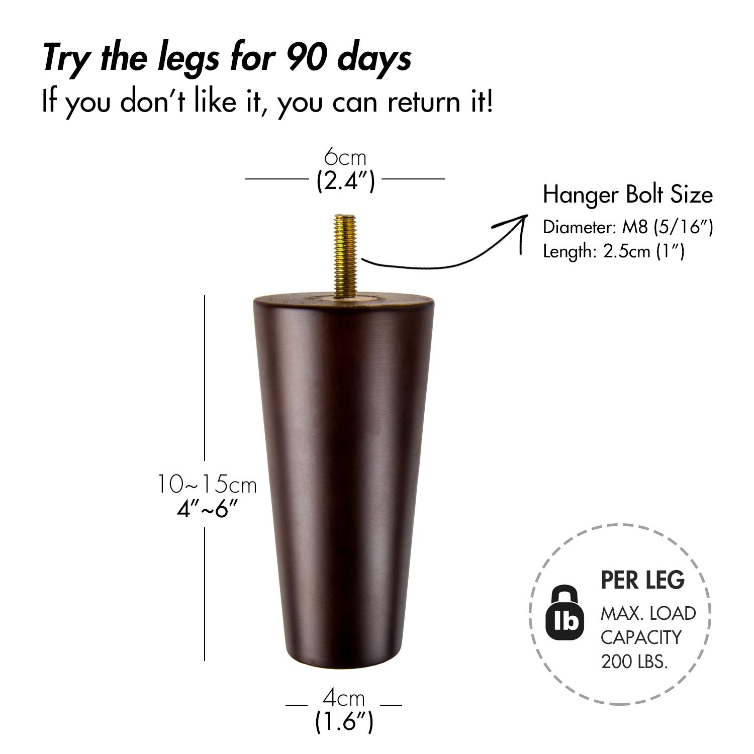 Ensemble complet de pieds de canapé : comprend 4 pieds en bois, 4 vis M4 x 20, 4 patins en caoutchouc et 4 plaques de montage. 4 Inch Pieds De Meuble En Bois Solide, Btowin 4 Pièces Pieds De Ces pieds de canapé ou de lit en bois sont incroyablement robustes, durables et complètement sûrs sans substances nocives. Pied Meuble Bois EETU Lot De 4 Pieds De Meubles En Bois Massif De 20 Cm Avec Plaques De Pied De Meuble 20 Cm 【Service après-vente】Nous adhérons à l'attitude de qualité d'abord. 4 Pièces Pieds De Canapé En Bois Fuselés, Pieds Meubles Bois Massif... S'il y a un problème concernant l'utilisation de nos pieds en bois pour meubles, n'hésitez pas à nous contacter, notre équipe de service 24h/24 et 7j/7 résoudra votre problème dans les 12 heures. Améliorez presque tous les pieds de meubles sans effort. Bois massif et respectueux de l'environnement : fabriqué à partir de matériaux de pieds de meubles en bois de qualité supérieure – Bois d'hévéa massif, fini avec un vernis de protection.