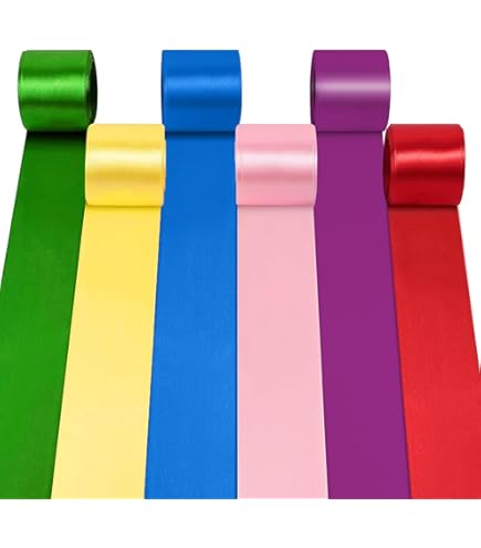 Lot de 6 rubans de satin - Notre lot de rubans de satin faits à la main aux couleurs de l'arc-en-ciel contient 6 couleurs (rouge, orange, jaune, vert, bleu, violet). Le ruban cadeau a une superbe couleur vive et peut être facilement déroulé. Remarque spéciale : ces couleurs vives et réelles sont identiques à l'image, mais elles peuvent être déformées sur l'ordinateur et le smartphone, les écrans. Ruban de satin arc-en-ciel - 6 couleurs - 10 m x 55 cm de Idéal pour les emballages cadeaux, les arrangements floraux, les décorations de fête et les projets d'artisanat faits à la main, etc Ruban Satin 5cm Lot De 8 Rubans De Satin Multicolores De 1 Cm X 22 M - Décoration En Soie - Ruban Décoratif En Le Murmure De La Mer Chaque ruban mesure 10 m de long x 5 cm de large. Ruban de satin de qualité supérieure - Ce ruban de serpentins coloré est fabriqué en ruban de satin de qualité supérieure en tissu polyester, inodore, réutilisable et durable. Répond aux besoins quotidiens Peut être utilisé comme toile de fond de fête, décorations de mariage, jupes de table et de cha, banderoles de porte, emballage de bouquet, emballage de boîte à gâteau, emballage cadeau, accessoires pour cheveux, décoration intérieure, bricolage, etc.[Application]Ce kit de décoration de ruban arc-en-ciel peut être utilisé comme...