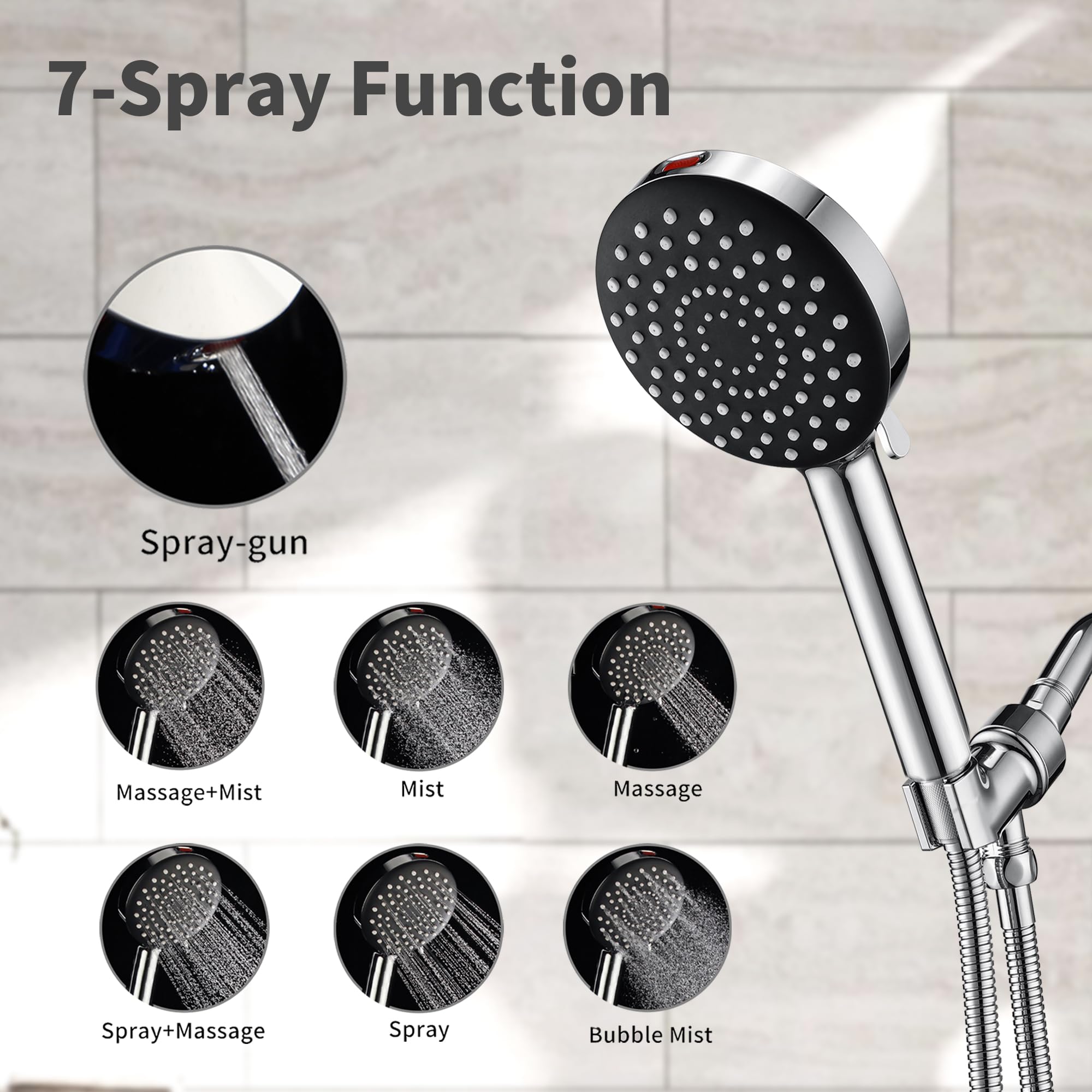 Pommeau de douche intelligent alliant purification et confort. Fonction de filtre]Système de filtre multicouche, contient des composants tels que le KDF, qui élimine les impuretés et les polluants résiduels tels que le chlore et les métaux lourds (plomb, mercure, nickel, chrome), adoucit la qualité de l'eau et garantit la santé de la peau et des cheveux, l'eau Le Pommeau de douche massant 3 voies filtre chlore & calcaire, offre jets Spa-Spray, Massage et Pluie, réduit la consommation d’eau et transforme chaque douche en moment relaxant. 【Haute pression et économie d'eau】Le matériau ABS et la structure interne garantissent que le mode pistolet vaporisateur a un jet d'eau puissant ; Équipé de comprimés économiseurs d'eau, et l'eau s'arrête rapidement après votre arrêt, cela vous aide à économiser au moins 30 % d'eau par plusieurs méthodes. 【Fonction de filtre】Système de filtre multicouche, contient des composants tels que le KDF, qui élimine les impuretés et les polluants résiduels tels que le chlore et les métaux lourds (plomb, mercure, nickel, chrome), adoucit la qualité de l'eau et garantit la santé de la peau et des cheveux, l'eau filtrée douce est également plus adaptée à la peau des enfants. 3 modes d'hydrothérapie + fonction pistolet haute pression (1,8 bar) avec économie d'eau intégrée (-30%). La révolution hygiénique pour votre salle de bain. 【Facile à nettoyer】Fabriqué en silicone de haute qualité, la sortie d'eau n'est pas facilement obstruée ; Vous pouvez le nettoyer à la main ou avec une serviette. Installation instantanée sans outil (kit complet inclus). 【Fonctions de pulvérisation 3+1】3 types de pulvérisation conventionnels, + fonction pistolet vaporisateur pour répondre à vos besoins quotidiens. Pomme De Douche Haute Pression 4 ModesPommeau De Douche Haute Pression Pommeau De Douche Filtrant Pommeau de Douche Filtrant, Pommeau de Douche Haute Pression, Pomme de... Sanycasa Pommeau douche anti Calcaire Economie Deau Filtre Douche
