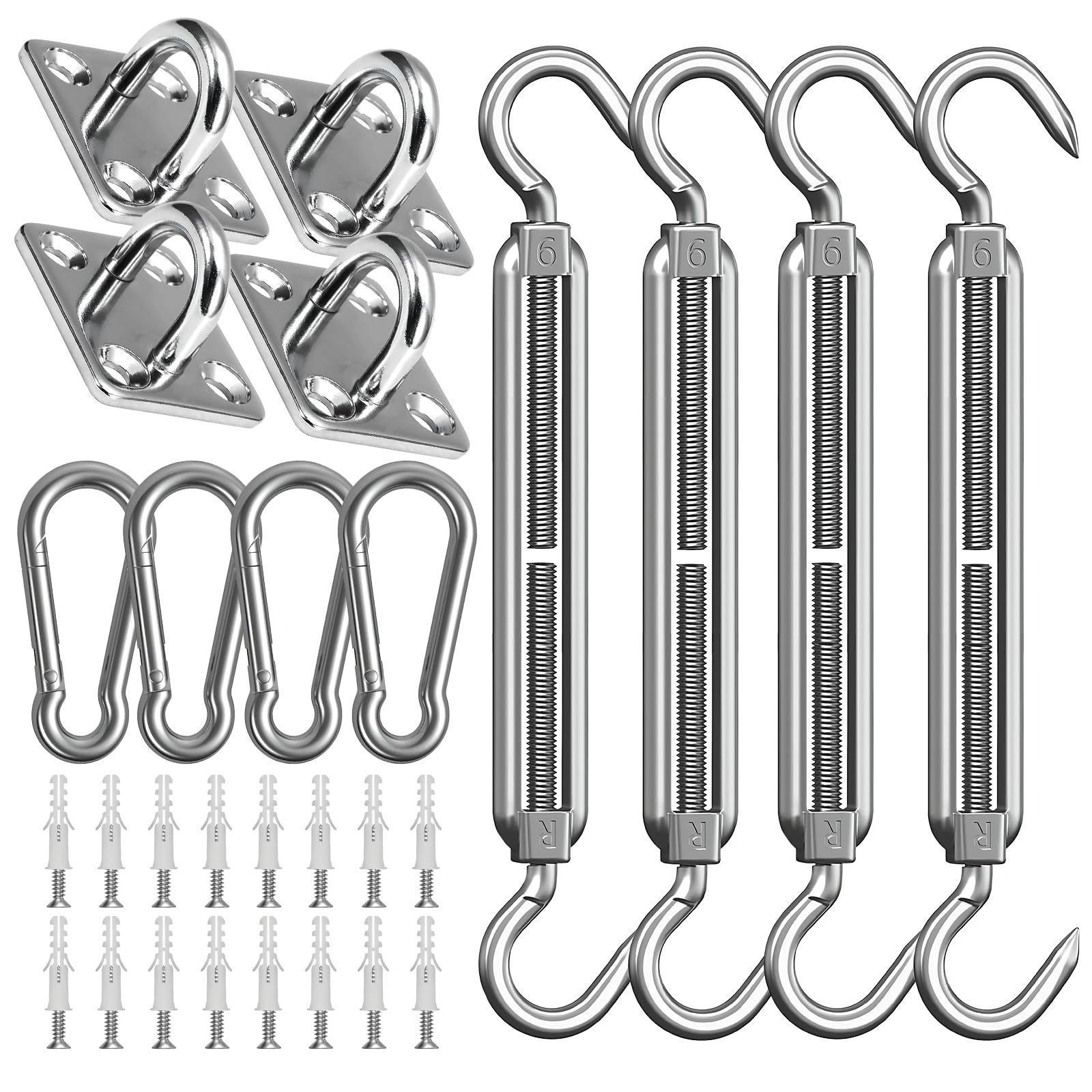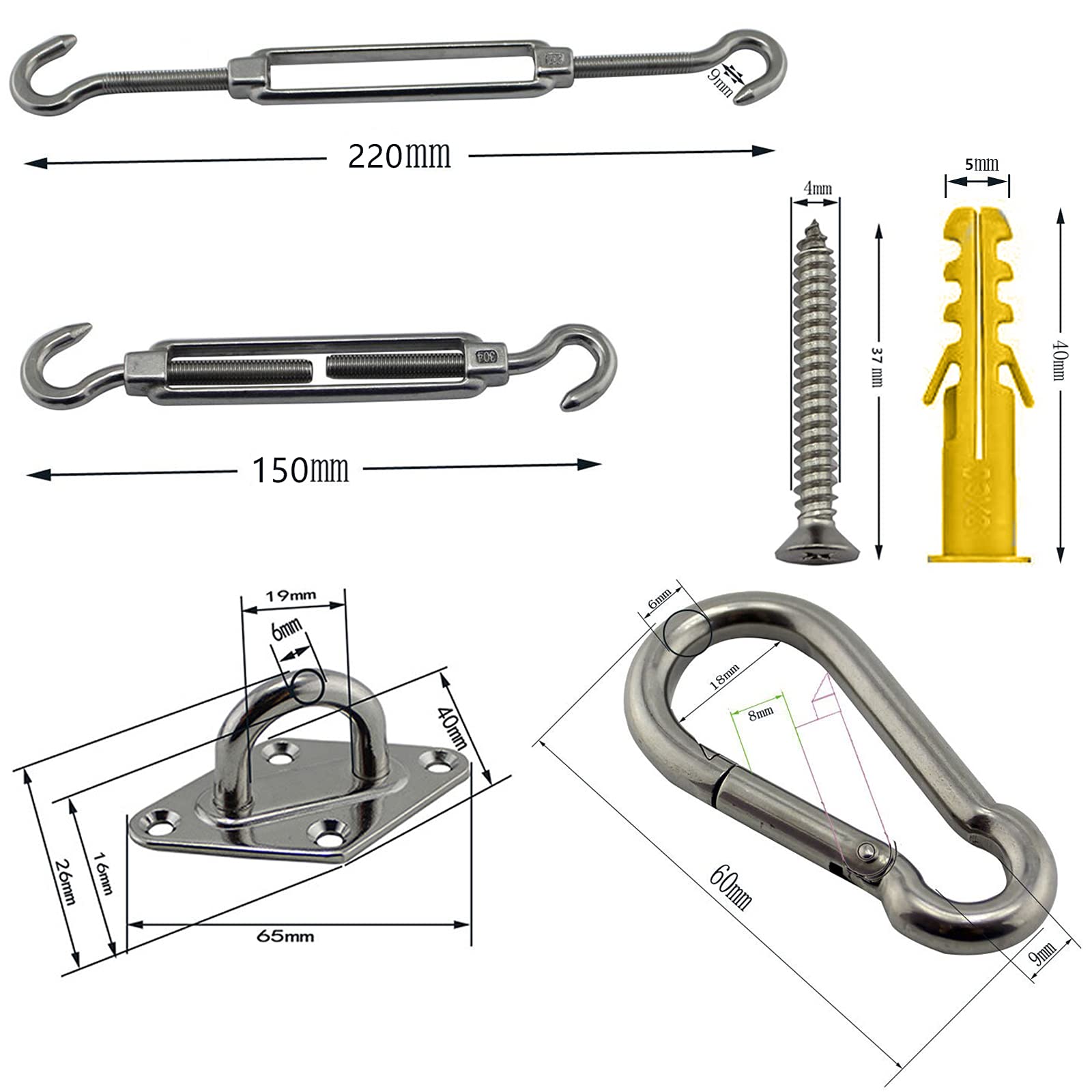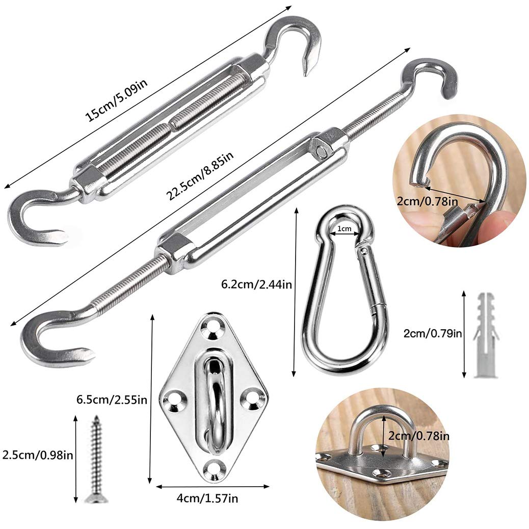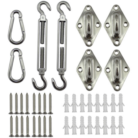 【Capacité de Charge Élevée】Nos vis en acier inoxydable sont plus épaisses et plus longues que la taille habituelle, ce qui peut créer une capacité de charge élevée pour maintenir vos voiles stables par vent fort et pluie. Kit de Fixation pour Voile d'Ombrage, Inoxydable pour Voile d'Ombrage... Kit de fixation 24pcs pour voile ombrage | FR 【Réglable Tendeur】Tendeur réglable pour créer une tension, ce qui fonctionne très bien pour resserrer ou desserrer la voile du soleil. Pelouse A Semer Kit De Fixation Pour Voile D'ombrage - Inoxydable - 40 Pièces Accessoire Chasseur A propos de ce produit :[ACIER INOXYDABLE DE HAUTE QUALITé]En acier inoxydable qualité marine. Capacité de charge élevée, Durable et robuste, bonne résistance à la corrosion, résistance à leau / au feu / à la rouille.[TENDEUR RéGLABLE]Tendeur réglable pour créer une tension, ce qui fonctionne très bien pour resserrer ou desserrer la voile du soleil. Obtenir la toile... 【40 Pièces Kit de Fixation Voile d Ombrage】2 x Tendeur, 2 x Crochet, 4 x Support mural, 16 x Vis, 16 x Boulon. 【Matériau de Haute Qualité】Fabriqué en acier inoxydable 304 de haute qualité, durable, résistant à la corrosion, résistant à la rouille, conçu spécifiquement pour une utilisation en extérieur, adapté au jardin, au patio, à l'arrière-cour, au pavillon, à la terrasse, au café, ou appliqué à un éclairage de lustre paysage.