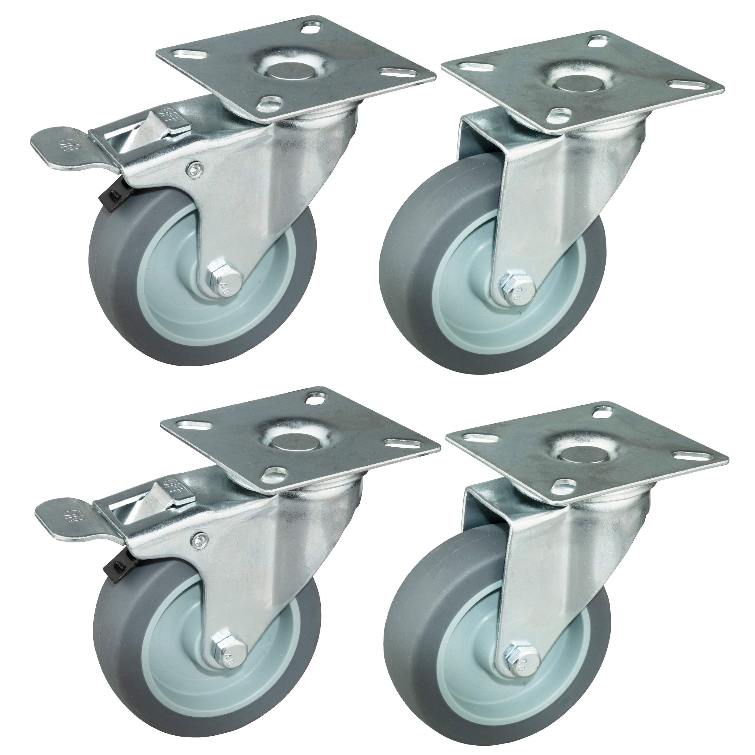 - Les roulettes sont fabriquées en plastique/métal. La plaque de fixation est en métal. Cela signifie que que les roulettes des meubles tournent encore autour de leur propre axe lorsque le frein est serré, mais une roue peut être évitée. HRB Roulettes de transport de 75 mm, capacité de charge totale de 240 kg (4 roulettes pivotantes, 2 avec frein, 2 sans frein Set de 4 roulettes pour meubles 40 mm - Roues de transport avec frein jusqu'à 100 kg - Roulettes de chariot sans usure du matériau - Roulettes pivotantes à... La hauteur de 55 mm protège également vos meubles de l'humidité du sol. Les roulettes pour meubles avec frein sont idéales pour être vissées sous les meubles. Le set de roulettes est idéal pour les commodes, les roulettes de table, le transport de planches à roulettes, etc. Que ce soit un buffet, un tabouret, une commode, une caisse en bois, Table de salon ou table de chevet. Informations sur le produit : - Lot de 4 roulettes de transport en plastique. La charge maximale par roulette de transport de meubles est de 25 kg/rouleau pour une hauteur totale de 55 mm. Roulette Pivotante Extérieure Lot De 4 Roulettes De Transport 100 Mm Avec Frein De La Marque HRB - Capacité De Charge Maximale Roulettes Pivotantes Les roulettes pour parquet ne laissent pas de traces et ont une faible résistance au roulement. Chaque roue supporte 380kg, soit 1520kg pour le lot de 4 - de quoi déplacer des meubles lourds, des machines ou des équipements industriels sans... Ces roulettes pivotantes pour usage intensif sont fabriquées en polyuréthane non marquant, e Il est conçu comme frein de course. Les roulettes de meuble se distinguent par un design simple mais moderne et s'adaptent parfaitement aux meubles. Les roulettes sont pivotantes à 360 degrés et équipées d'un frein. qui peut supporter une charge de 25 kg par roulette. - La hauteur totale est de 54 mm.