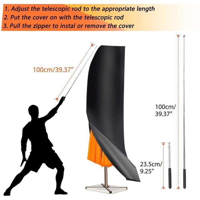 La descriptionIl y a un cordon d'ourlet ajustable en bas. Housse de Parasol, Couverture de Parapluie de Jardin, Anti-UV/Anti-Vent/Imperméables Tissu De Matériau durable]: Il est fait de tissu épais 210D Oxford, qui peut fournir une protection complète et empêcher le parapluie de se casser, de se décolorer, de se déchirer et de moisir. ☂ [Conception de corde]: Il y a une corde d'ourlet réglable en bas, qui peut fixer la housse de protection sur le parasol pour éviter d'être emportée par le vent, ce qui est très pratique... ETANCHE: solide tissu imperméable Oxford, enduit PU, respirant, léger, confortable et robuste de montage. HAUTE QUALITÉ - Fabriqué à partir de tissu oxford, ce robuste couverture de parasol est imperméable à l'eau, résistant aux UV, résistant à la déchirure et résistant à la décoloration, mieux protéger votre parasol à partir des environnements difficiles. Parasol Couverture est spécialement conçu pour fixer le couvercle de protection sur le parasol afin de ne pas être époustouflé par la couverture Parasol wind. Fonctionnalitéparasol couverture-La couleur noire. La couverture ne rétrécit pas, fondu ou se déforment dans des conditions difficiles telles que la pluie, la neige, le gel ou les excréments d'oiseaux. Windproof est facile à mettre et à enlever. Convient à 2 à 4 m (6 à 13 pieds) parasols. Notre housse de parasol imperméable est fabriquée avec des matériaux et un savoir-faire professionnel, offrant durabilité et résistance. Il peut être laissé à l'extérieur toute l'année et offre une protection complète contre les intempéries Couverture De Parapluie 210D Oxford Tissu De Parasol De Patio Couvertures De Parasol ?VENT RESISTANT?: Le cordon rond avec cordon dans le fond verrouille le couvercle et empêche le vent de souffler hors du parapluie.