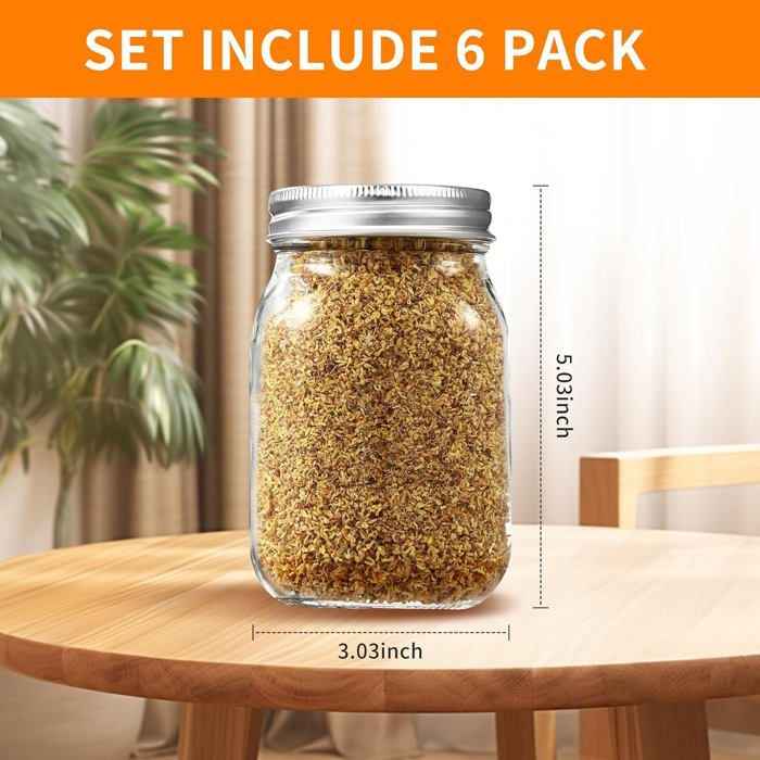 Hermétique et anti-fuite : chaque bocal en verre | pot à confiture avec couvercle | le pot à confiture est équipé d'un bouchon en métal de haute qualité et d'un joint d'étanchéité pour assurer une étanchéité complète à l'air et une résistance aux fuites, préservant ainsi la fraîcheur et la sécheresse des aliments Caractéristiques du produit : Bocal de qualité alimentaire : ces bocaux de 500 ml avec couvercle sont fabriqués en verre de qualité alimentaire, parfaits pour stocker des salades, des oates nocturnes, des confitures et plus encore. 6 bocaux Mason avec bouchon à vis 500 ml Bocal Mason avec couvercles Convient pour conserver les flocons d'avoine Vinaigrette à salade de yaourt ; Numéro d... Réutilisables : ces pots à confiture de 500 ml sont réutilisables et n'ont pas besoin d'être remplacés fréquemment. Dimensions : 7 x 13 x 6 cm Contenu de l'emballage : Lot de 6 bocaux Mason de 500 ml Idéal pour bocaux, conserves, choucroute. À la fois pratique et élégant,, Ces bocaux de conservation au couvercle en céramique décoré de flocons dorés seront parfaits sur votre table de fête Pour y stocker les biscuits et autre friandises Utilisation polyvalente pour les projets de bricolage : les bocaux Mason avec couvercles conviennent également pour les projets de bricolage, tels que la fabrication de produits de soins de la peau, de bougies ou comme cadeaux de mariage et de cadeaux. Bocaux En Verre Hermétique BUYGOO Lot De 6 Bocal, Couvercle à Visser 500 Ml, Pour Mason Jar Le design durable permet une utilisation répétée de chaque bocal avec couvercle et permet d'économiser des coûts Boîtes de mise en conserve 500ml, 4 pièces de pots pour flocons d'avoine de nuit, bocaux de mise en conserve avec couvercle à vis, pots pour préparation de repas, pots à confiture Ces bocaux en verre avec couvercle à visser sont parfaits pour le stockage des aliments, les inserts, les flocons d'avoine de nuit, les salades et plus encore pour répondre à différents besoins en cuisine Boîtes universelles : ce lot de 6 boîtes de 500 ml convient à une large gamme d'applications domestiques, telles que le stockage de confitures, cornichons et autres aliments. Nettoyage facile : la surface lisse des boîtes facilite le nettoyage, ce qui est important pour le stockage des aliments. Facile à nettoyer et réutilisable : le design à col large facilite le nettoyage des bocaux de conservation avec couvercle à visser et ils passent au lave-vaisselle. Le matériau en verre épais augmente la durabilité et assure une utilisation prolongée sans se casser facilement.