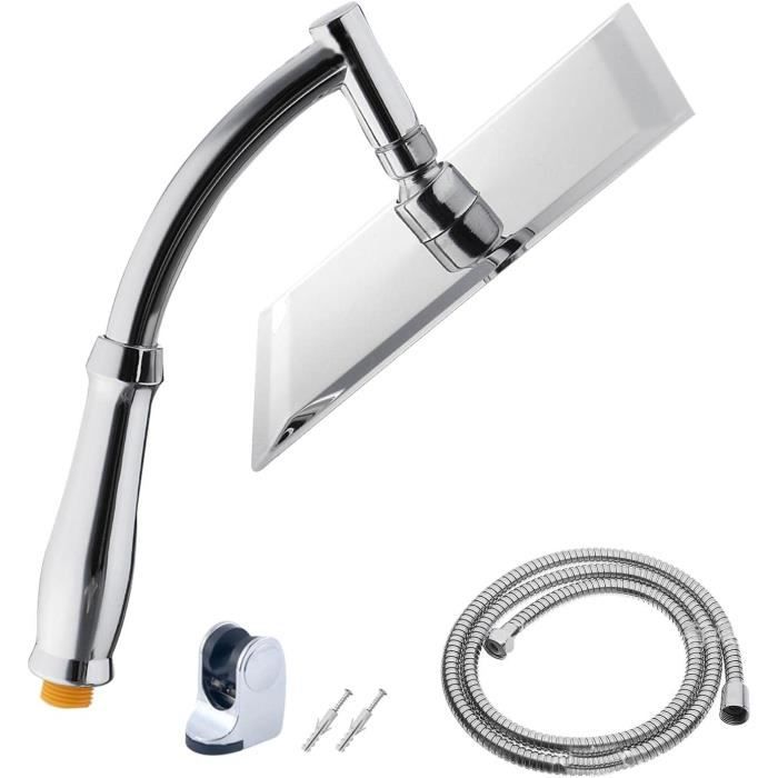 Le pommeau de douche dispose de 144 jets de massage et d'un mode douche à effet pluie, ce qui offre une expérience de douche luxueuse et relaxante. KINLIV Pommeau de douche effet pluie noir mat de 30,5 cm avec Pommeau de douche avec tuyau – Douchette pluie carrée 20 cm avec... Buses en silicone faciles à nettoyer – Le pommeau de douche carré dispose de 144 jets en silicone souple (certification ACS), ce qui peut autonettoyer garder les trous de pulvérisation anti-obstruction ; vous pouvez également rapidement et facilement essuyer l'accumulation de calcium et de calcaire avec le doigt sans utiliser de nettoyants chimiques Cela créera une expérience de pluie spécieuse et luxueuse. Il est facile à installer sans aucun outil et dispose d'une connexion en laiton massif. Ultra fin (0,3 cm) et technologie Air-in vous conduisent à une toute nouvelle expérience de douche, ce qui peut économiser 30 % d'eau efficacement. Ce kit de pommeau de douche moderne s'assemble et s'installe facilement en 5 minutes (d'abord, le bras de douche est monté sur le mur, puis le pommeau de douche connecté au bras de douche). Pomme de douche haute pression à haute pression : le grand pommeau de douche de 30,5 cm est assez grand pour couvrir tout votre corps. Qualité supérieure qui ne rouille jamais : le pommeau de douche cascade fabriqué en acier inoxydable 304 massif peut empêcher efficacement le test au brouillard salin pendant 24 heures, ce qui peut être antirouille, durable et a une longue durée de vie. Bras De Douche Npt 20Mm Bras De Rallonge De Pommeau De Douche Noir... Pommeau De Douche à Effet Pluie 30,5 Cm, Pommeau De Douche Haute Le kit de pommeau de douche élégant est également un bon cadeau précieux pour partager une expérience de douche spa avec votre bien-aimée.
