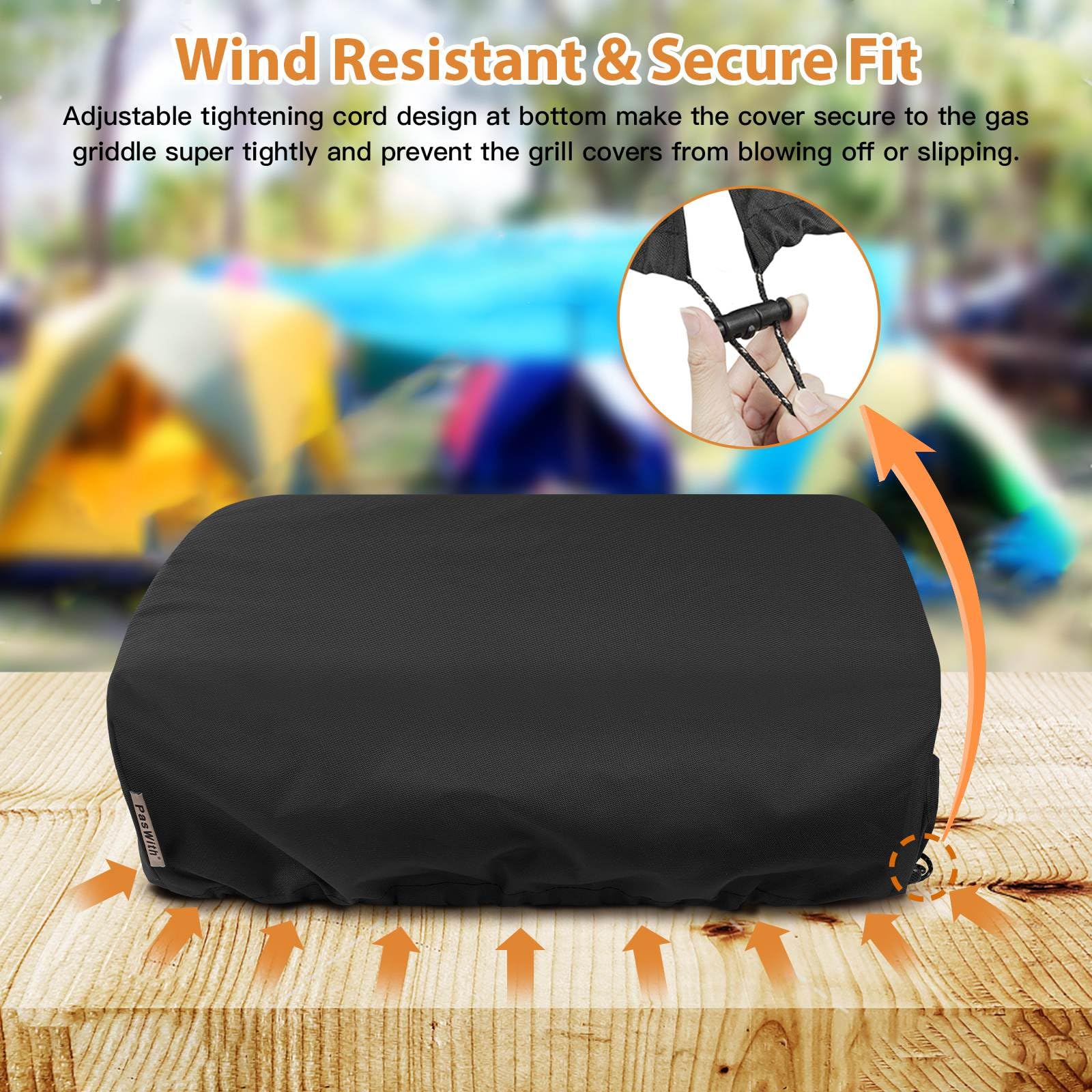※Avertissement : ne passe pas au lave-linge. ※Remarque : veuillez toujours laisser le barbecue refroidir complètement avant de le couvrir. Housse de gril Blackstone de 55,9 cm avec hotte, matériau 900D résistant aux déchirures et amélioré, 100 % imperméable, résistante aux UV et à la décoloration... ※Veuillez mesurer votre plaque avant d'acheter. Ouverture pratique : l'ouverture spéciale garantit une couverture sans démontage du tube, fermeture à boucle pour un enfilage et un retrait faciles. 100 % étanche : la housse de plaque chauffante de table est fabriquée en tissu double couche imperméable de qualité supérieure avec un ruban à couture scellée, ce qui peut fournir une double protection contre les fuites. Résistant à la décoloration et aux rayures : notre housse de barbecue durable est fabriquée en tissu UPF 50+, résistant aux déchirures, à la décoloration et aux rayures. 【Nettoyage facile】Il suffit de rincer à l'eau, et la saleté disparaîtra rapidement, et d'essuyer légèrement avec un chiffon pour nettoyer les taches d'eau. Gardez la plaque au sec, sûre et propre par tous les temps, elle dure toute l'année. Convient également pour les barbecues de table Blackstone Adventure. Housse De Protection Étanche Pour Plaque De Cuisson À Induction, 60 X NUPICK Housse De Protection Pour Plaque De Cuisson Blackstone De Séchez la housse à 2 brûleurs à l'air libre au soleil.