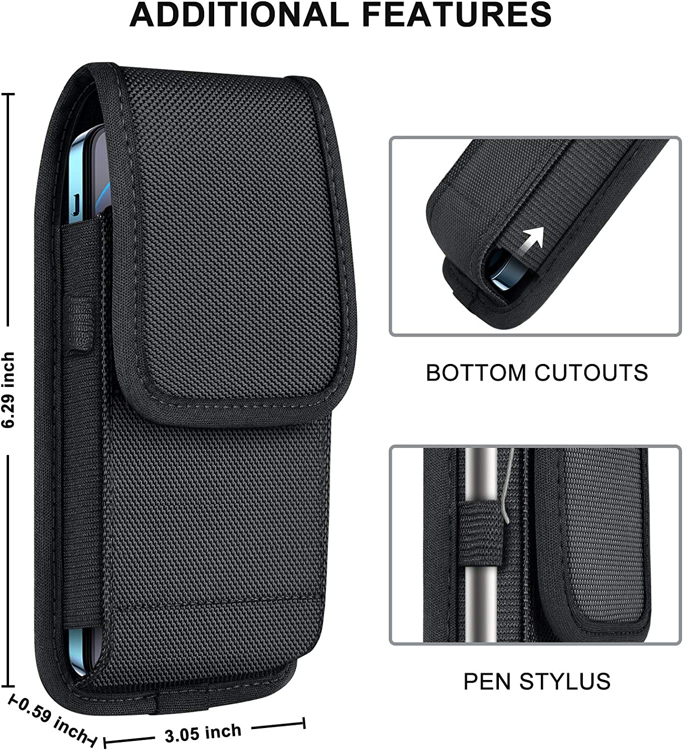 Étui en nylon robuste de 14 cm pour téléphone portable, étui de ceinture étanche 1., Étui universel compatible avec ces smartphones, mais certains modèles conviennent pour le téléphone nu ou la coque fine. ykooe Pochette de ceinture en nylon pour téléphone portable avec poche Étui Clip Ceinture Pochette Téléphone Nylon Housse Coque Ceinture pour... Convient pour iPhone 12, 12Pro (6., 1), 11, XR, pour Samsung Galaxy S21 5G, Note10, S10, S20, S8, S9, A41, S7Edge, Note 5 4 3 2, 01,A1 0e, A30s Pour Redmi Note6, Note5, Note3., Pour LG K10 K425, G3 D850, G6 H871, G6+, K31., Pour Sony Xperia XZ, Z5, XZS., Google Pixel 4 3 2., Pour Moto G7 Play., Pour Nokia 1., 3, 6., 1, C1, C1 Plus., Pour HTC 10, Desire 626., BlackBerry Priv Ajustement parfait pour téléphone avec la coque fine. Pour Samsung Galaxy Note 10, S21 5G, S10, S20, S8, S9, A41, S7Edge, Note 5 4 3 2, M01, A10e, A30s. Protection complète - Passant de ceinture pour maintenir la pochette de transport horizontalement. C'est un excellent ajout à votre collection d'accessoires de téléphone et fait un excellent cadeau pour les autres. Tissu Oxford sélectionné et tissu en nylon avec coutures exquises, durable et résistant à l'usure avec fonction imperméable, ce qui lui permet de tenir une forme solide, tout en étant assez flexible pour s'adapter à de nombreuses tailles d'appareils. Caractéristiques techniques : · Matériau : alliage Tissu en nylon 1000D · Dimensions : 3 9 x 16 x 5 cm · Hauteur réglable étuis De Ceinture Portable Étui Tactique Universel Pour Téléphone Portable Avec Ceinture De Sécurité EDC - Kit D'accessoires De Transport Compatible Avec IPhone 12, 12 Pro, 11 étui Ceinture Téléphone Plus un mousqueton en métal pour une installation et un retrait rapides, vous pouvez l'accrocher à votre sac à dos ou sacs.