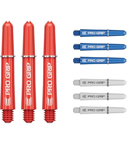 Pro Grip Dart Shafts 9 Target Pro Grip White Short Dart Shafts - 3 Sets Of Professional Dart Stems Dart Extra Short Shafts La canne à fléchettes Pro Grip est le modèle le plus économique de la marque anglaise Target Darts, c'est un produit avec un rapport qualité prix très élevé. 5 Sets (15 Stück) Target PRO-GRIP VISION Shaft blau kurz, 8,30 Integrated Dart Flights And Shafts 5 Sets (15 Stück) Target PRO-GRIP VISION Shaft Blau Kurz, 8,30 Tige Flechette The Pro Grip dart rod is the most economical model of the English brand Target Darts, it is a product with a very high quality price ratio. Includes 3 feather attachment rings Marque Target Darts Ex Short 34 mm Couleur Violet Ce produit est composé de 1 set de 3 cannes Pro Grip Target.