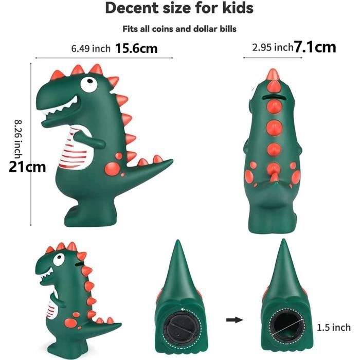 Cette tirelire amusante en céramique en forme de dinosaure sortant d'un œuf est un accessoire charmant pour n'importe quelle pièce. Tirelire amusante : cette tirelire en forme de dinosaure sortant d'un œuf en céramique est une option originale et amusante pour économiser de l'argent. Que ce soit pour encourager les enfants à économiser ou simplement comme ajout amusant à votre décoration, cette tirelire dinosaure est un choix charmant. Cette tirelire vert menthe, aux jolis pics verts et au sourire malicieux, est un cadeau aussi déco qu'utile, parfait pour les petits aventuriers. À offrir lors... Le motif imprimé est transféré à chaud dans la céramique afin qu'il ne pâlisse pas et ne pèle pas. Taille environ : hauteur 9,6 cm, diamètre 8 cm (3,8 x 3,15 po... Tirelire Geante Tirelire Cochon Rose En Céramique 18 Cm Tirelire Garcon Enfant En plus de son attrait visuel, il dispose d'une serrure pour garder vos économies en sécurité. tirelire enfant avec prénom - Tirelire dinosaure - Cadeaux enfant à Design unique : avec un design unique et accrocheur, cette tirelire d'environ 15 x 11 cm est parfaite pour décorer n'importe quel espace. Profitez de l'excitation de voir se remplir progressivement tout en accumulant vos pièces. Cadeau idéal : c'est un cadeau créatif et divertissant pour les enfants et les adultes.