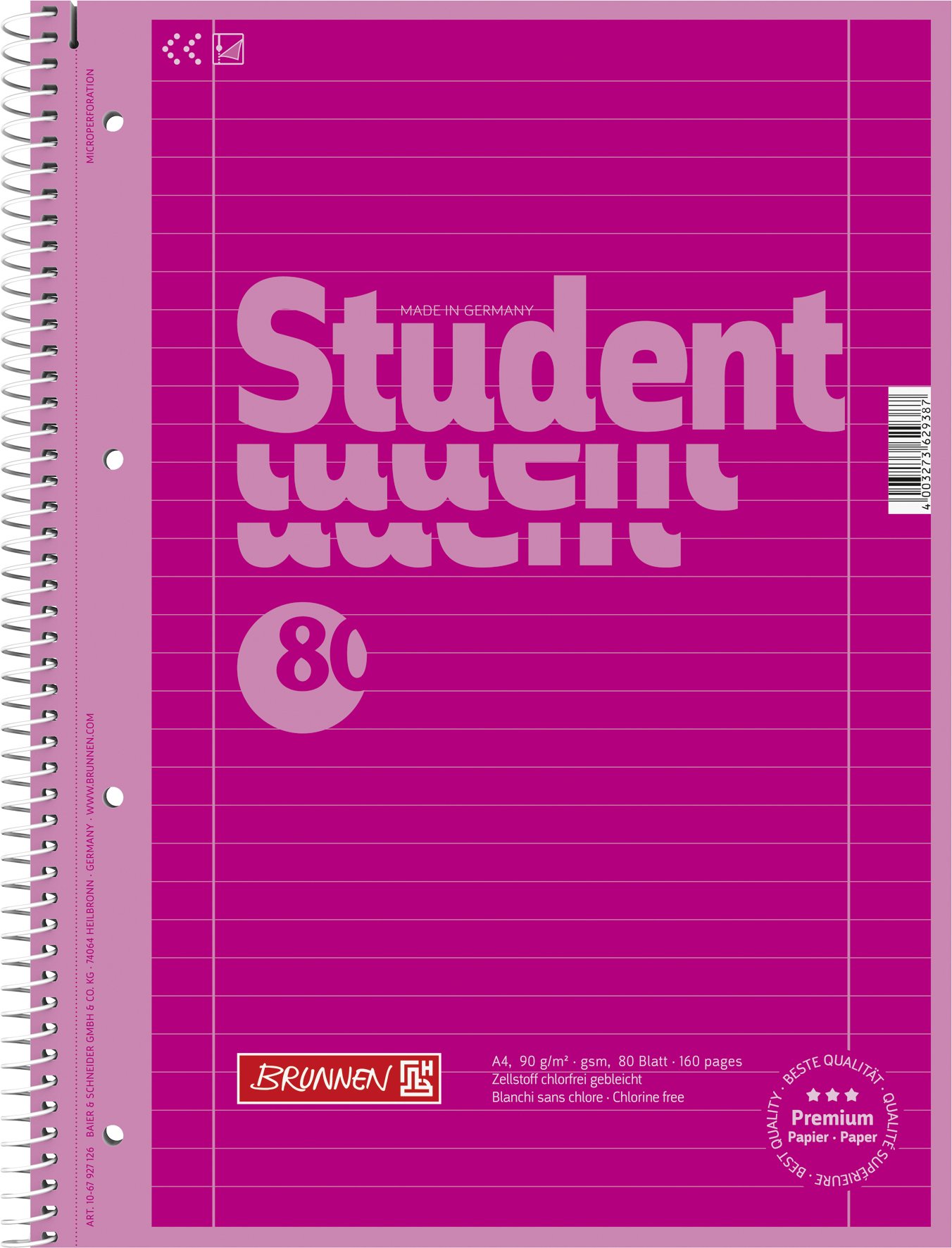 Grâce à la micro-perforation et à 4 perforations, les pages importantes sont retirées et agrafées en un tour de main. Bloc à dessin A3. Contenu : 10 feuilles BLOC DE DESSIN MAX BRINGMANN 130G NOIR FORMAT A3 BLOC DE 10 Brunnen Bloc-notes Premium Student « White » - Format A4... Brunnen 1067111 Notizblock/Collegeblock Student Premium Linkshänder Le papier résistant à l'encre permet d'utiliser différents stylos sans tracer pour un rendu propre et professionnel. Brunnen Feuilles A5 Brunnen Bloc-notes Premium Student « White » - Format A4 Meilleur Brunnen A5 Avec un format DIN A4 et une structure lignées comprenant des marges intérieures et extérieures, ces blocs-notes sont idéaux pour prendre des notes, faire des croquis et capturer des idées Format : A4 • Ligné avec marge intérieure et extérieure, Lin. 27 • 80 feuilles • 90 g/m², papier haut de gamme, blanc satiné, résistant à l'encre, reliure en spirale, 4 trous, aide à la déchirure, micro-perforation • Couleur : blanc, avec effet brillant mat perceptible • Fabriqué en Allemagne