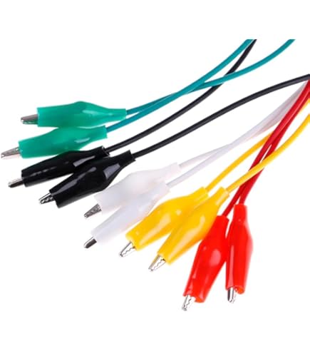 Solidement pour la plupart des travaux. Cable Enceinte Pince Crocodile Pour Insérer Un Fil De Test En Cuivre, Fiche Banane Pour Tester Les Fils De Connexion, Rouge Et Noir Optionnels, Pratique Et Commode J70042 Test Thc ✪ Cordons de test avec jeu de pinces crocodiles : 10 cordons de test de couleur rouge, vert, jaune, noir, blanc (2 pièces de chaque couleur) et chaque longueur est de 50 cm/19,7 pouces, le fil est de 24 AWG. Tresse A Dessouder 10 Pièces De Fils De Test électriques DIY, Pinces Crocodile à Double Extrémité Attaches Parisiennes ✪ Fabrication de connexion solide : le fil est serti solidement sur les clips, fonctionne bien pour les circuits de cavalier et effectue des changements ou des tests de circuit temporaires. Cordons de test avec jeu de pinces crocodiles : 10 cordons de test de couleur rouge, vert, jaune, noir, blanc (2 pièces de chaque couleur) et chaque... ✪ Couleur distincte : les cordons de test à 5 couleurs sont pratiques pour garder une trace des fils lors du test de plusieurs choses, vous aidant à les distinguer visuellement. ✪ Nombreuses applications : les câbles crocodiles sont pratiques pour la plupart des travaux électroniques légers tels que les expériences, la planche à pain, le prototypage ou le diagnostic des interrupteurs de sécurité défectueux. Le fil est serti solidement aux clips Couleur distincte Les 5 couleurs différentes sont pratiques pour garder une trace de quel fil est lequel lorsque vous testez plusieurs choses en même temps, vous aidant à les distinguer visuellement les unes des autres.