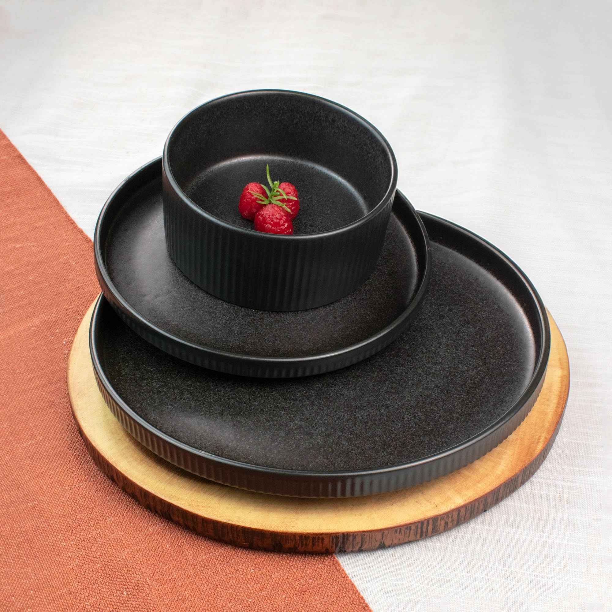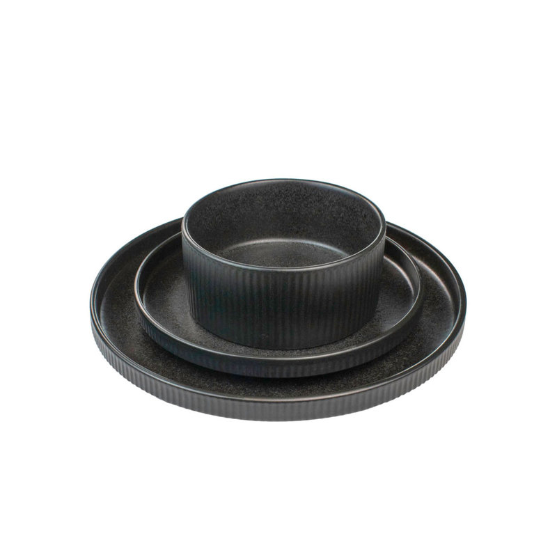 Ajoutez un style moderne et unique à votre expérience culinaire avec cet ensemble de vaisselle. Glaçage réactif exquis : chaque pièce est unique en son genre, grâce au processus de cuisson qui donne au grès une finition distinctive et belle. Ensemble complet de 12 pièces : comprend 4 assiettes plates, 4 assiettes à salade et 4 bols à céréales, parfait pour servir des repas pour quatre personnes. Dalle Grès Kandla Noir Mesa Ceramics Service de vaisselle 12 pièces en grès sable océanique... Table En Grès 12 Pièces Sango Anderson Service De Table 12 Pièces En Grès Noir Service Assiettes Noir Et Blanc La surface intérieure a un vernis réactif exquis. Sango Stockholm Service de table 12 pièces en grès noir/blanc Grès durable : conçu pour une résistance et une qualité durables, cet ensemble est conçu pour résister à un usage quotidien tout en conservant son élégance. Design moderne et élégant : dispose d'une finition mate élégante avec des stries texturées pour un look unique et contemporain. Le design empilable assure un rangement facile, économisant de l'espace dans votre cuisine.