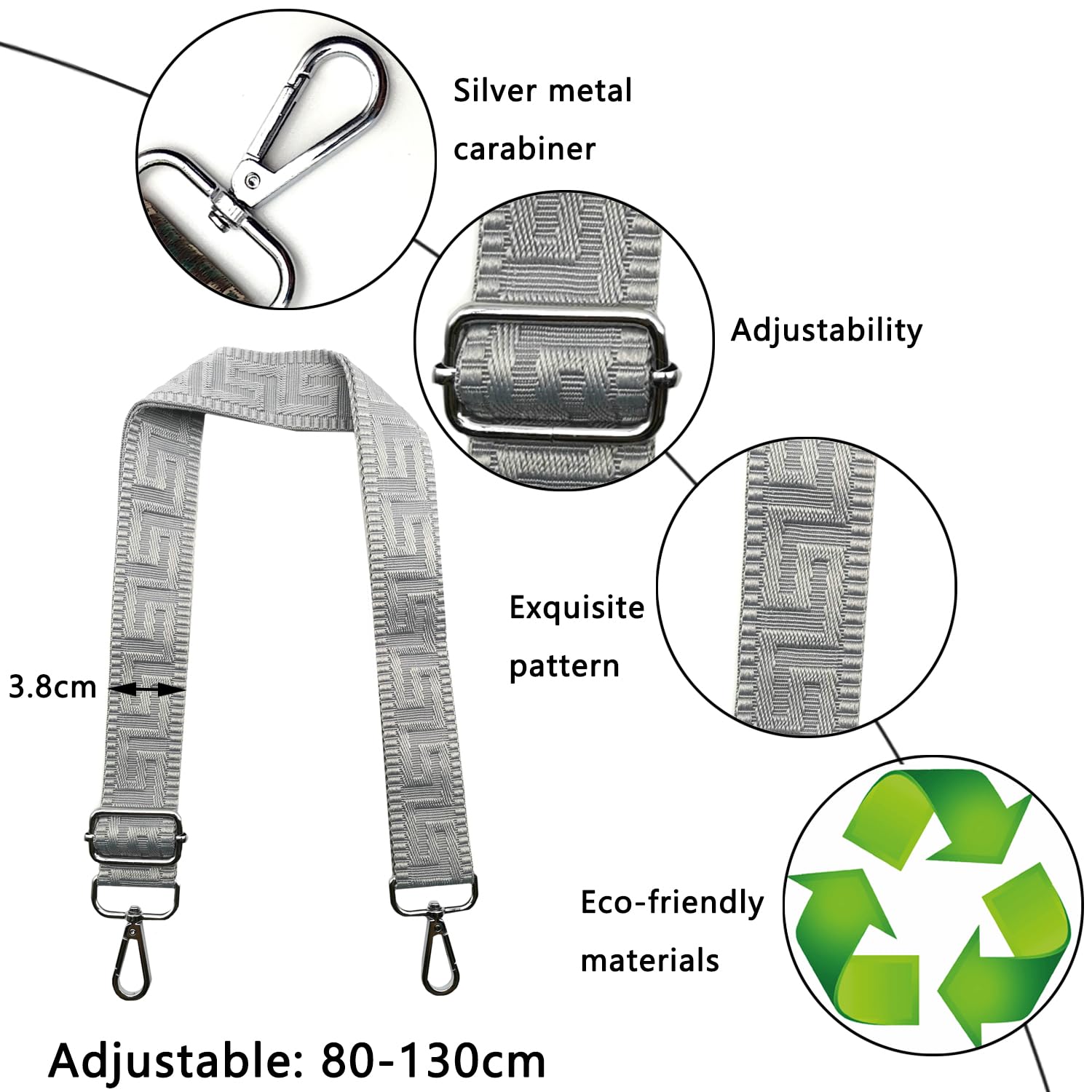Nouveau design, ce style est très populaire. Sangle Pour Sac à Main Pistolet NO.266 - Arc-en-ciel Ceinture De Sac à Main Large Sangle De Sac Sangle De Sac Réglable Haute qualité, excellente finition et matériel durable. Réglable : le sac mesure 80-130 cm de long et 3,8 cm de large, de sorte que vous pouvez porter le sac confortablement sur l'épaule ou le croiser par-dessus. Bretelles larges et douces pour détendre vos épaules. Doux et confortable, coutures étroites, sangle de sac de... Livré avec une longue bandoulière réglable pour plus de confort sur l'épaule ou sur le dos. Description : Dimensions : largeur : 3,8 cm, longueur : 80-130 cm (réglable). La boucle ne rouille pas facilement et la couleur ne tombera pas pendant longtemps. Contenu : Matière : coton Utilisation : sac à main, porte-monnaie. Durable : l'ensemble du matériel de la sacoche est suffisamment durable pour un usage quotidien, élégant et polyvalent, beau et raffiné. Il peut être installé et retiré rapidement et facilement. Bretelles larges et douces pour détendre vos épaules. Bandoulière réglable de 80 à 130cm, largeur 3.8cm. En polyester antidérapant, avec boucle rotative à 360°. Parfaite pour remplacer une sangle de sac à main... Pimentez votre sac préféré aujourd'hui avec nos bandoulières. Il ne se décolorera pas et ne se décollera pas. La bandoulière en textile est dotée d'un mousqueton en métal de chaque côté, vous permettant ainsi de l'attacher facilement à un sac à main ou à un sac. Assortissez vos différentes tenues. Disponible dans une grande variété de couleurs et de styles. Bandoulière jolie et pratique qui peut être accrochée à n'importe quel sac à main, y compris pour mère, épouse, petite amie, sœur , Bretelles avec boutons-pression. Bretelle Décorative Sac Bandoulière Réglable Pour Sac - 3.8cm De Large - Longueur 80-130cm - Mousquetons Argentés - Multicolore Sangle Pour Sac