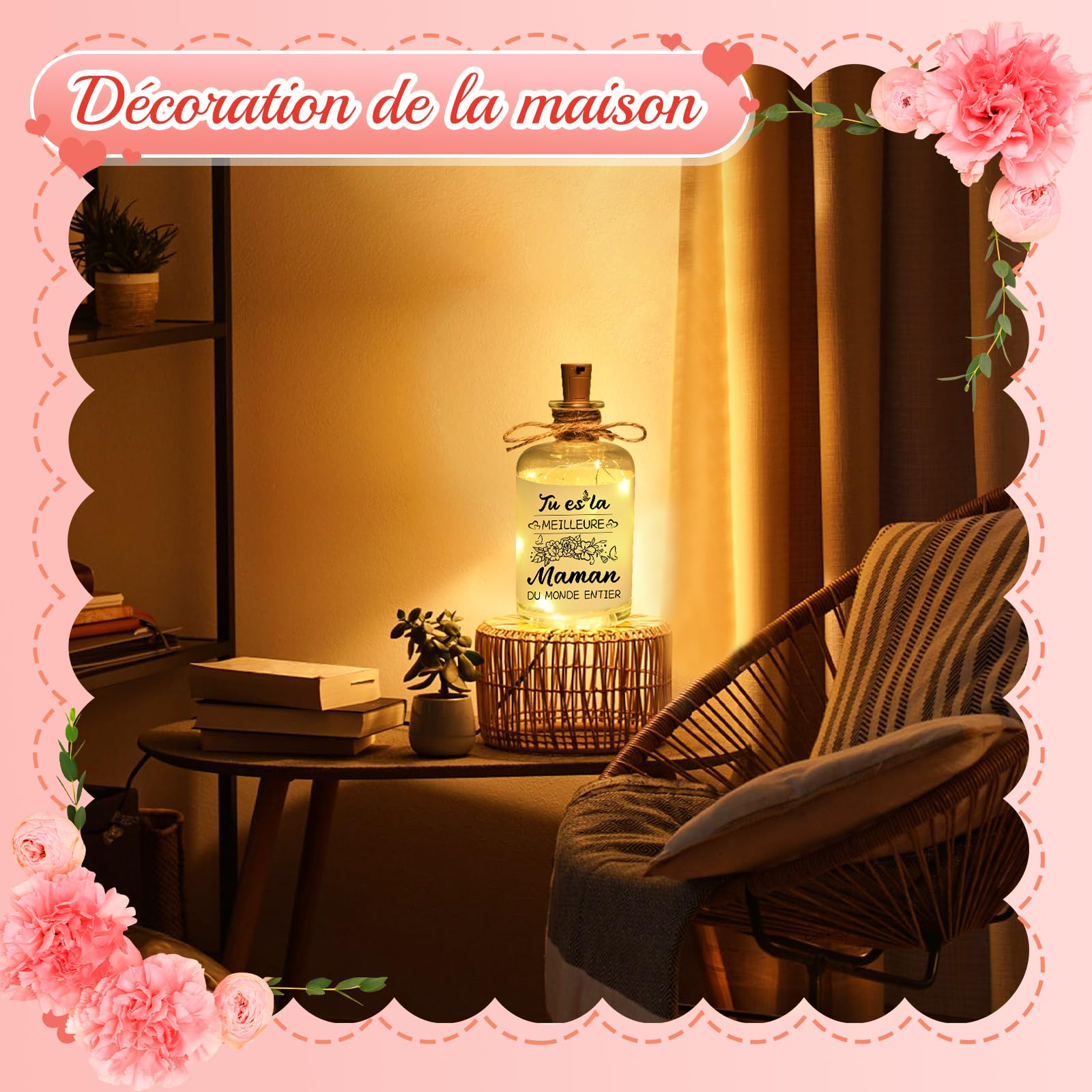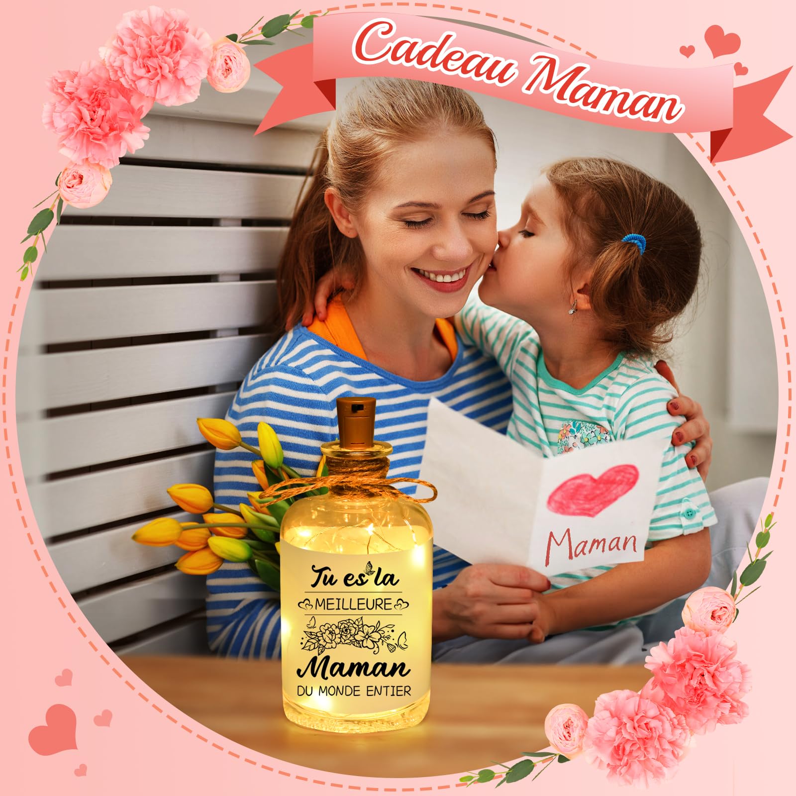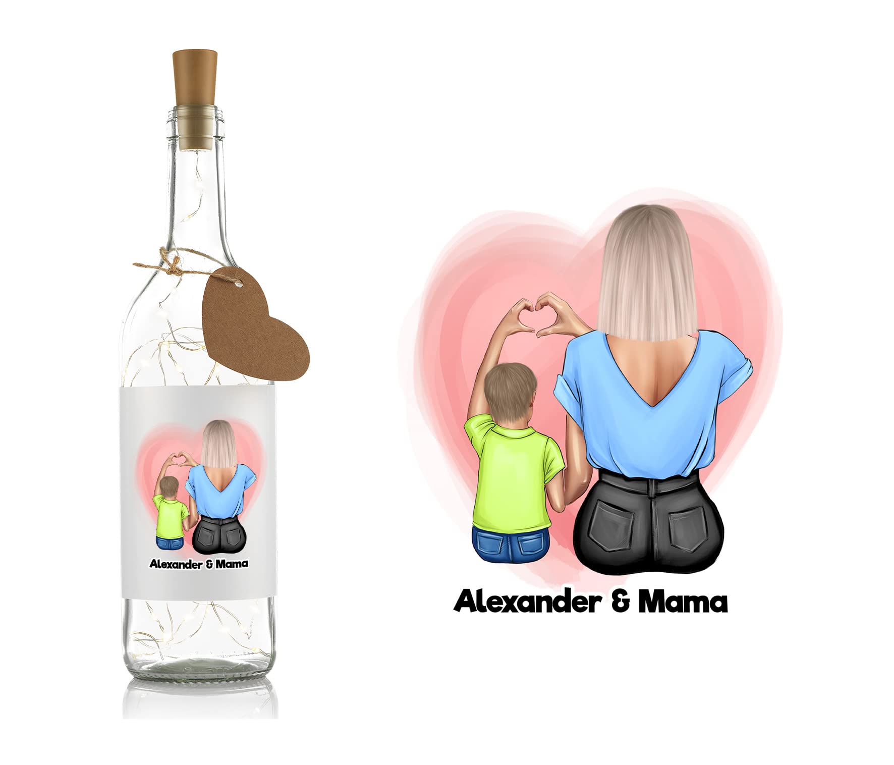 Un cadeau pour maman La fête des mères est une journée spéciale pour rappeler à nos mamans à quel point elles sont uniques et importantes. Si vous recherchez un cadeau adaptés à toutes les occasions, de Noël à l’anniversaire, pourquoi ne pas lui offrir une belle bouteille avec une étiquette personnalisée. Vous pouvez choisir un thème adapté, puis, ajouter vos meilleures photos... ❤️Bouteille décorative personnalisée pour la fière maman avec le motif au choix de la mère et de l'enfant. Idéal comme cadeau d'argent. Poster fête des mères personnalisé Maman F Gourde Ou Bouteille Personnalisée Enfant Adulte Ampoule Fleurs Les cadeaux personnalisés font plaisir à tout le monde. La pile bouton est facile à remplacer. ❤️ La guirlande LED s'allume et s'éteint sur le bouchon de la bouteille. Pour les noms ou un petit dicton, il y a aussi de la place. Cliquez sur Personnaliser maintenant et décidez pour un look de votre choix. Bouteille lumineuse LED, meilleure maman, bouteille avec guirlande lumineuse, idée cadeau, bouteille décorative LED, idées cadeaux, fête des mères, cadeau... Que ce soit pour la fête des mères, un anniversaire, Noël, ou aussi comme cadeau de famille ou d'amitié pour maman et son enfant.