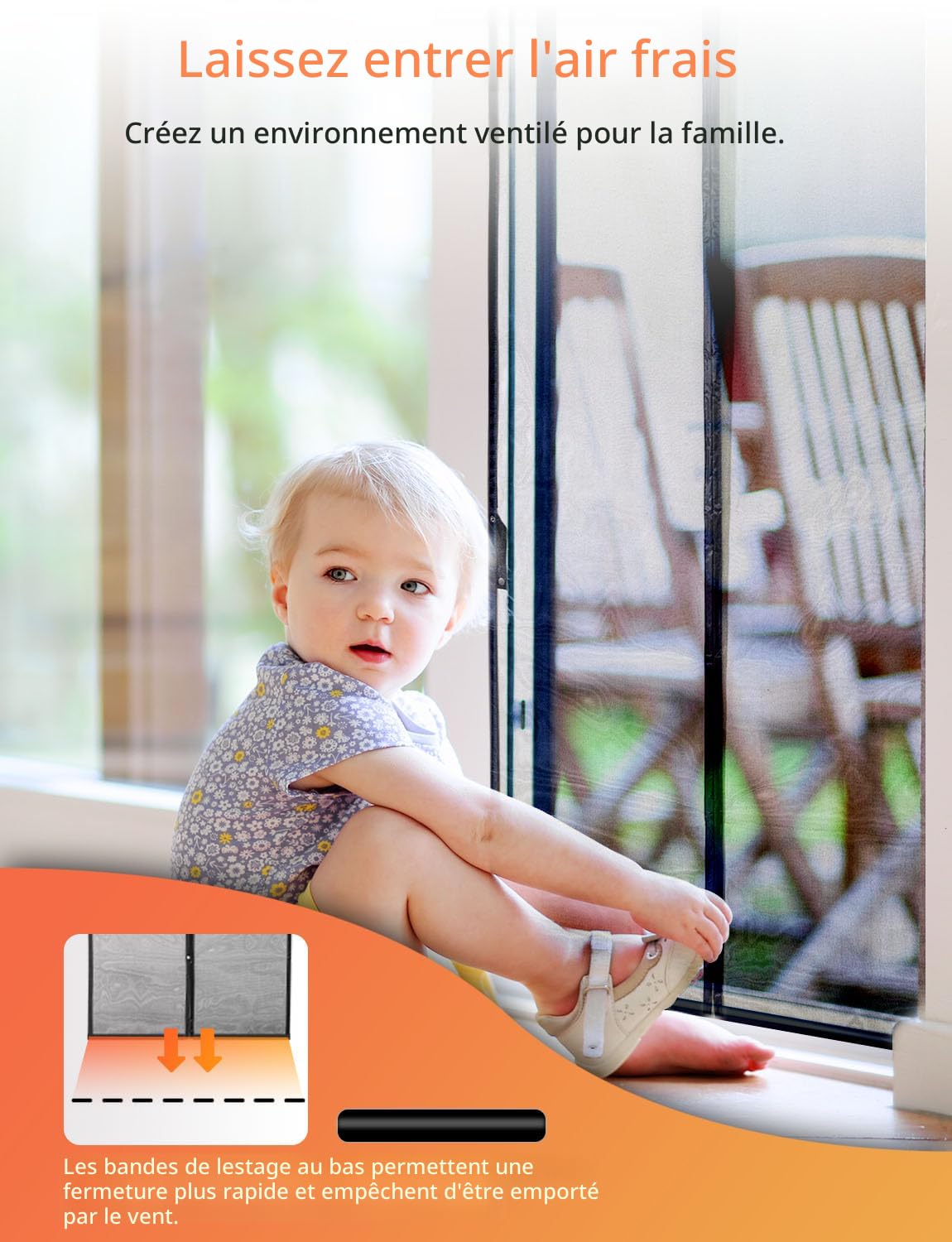 Aimants à bande complète pour une fermeture transparente : taille de l'écran 96,5 x 205,7 cm, s'adapte à toutes les portes jusqu'à 91,4 x 203,2 cm. La bande Velcro intégrale assure un ajustement parfait au cadre de la porte. Au fur et à mesure que vous marchez à travers, l'écran se ferme magnétiquement Se ferme et s'ouvre facilement sans crainte de tomber, adapté aux enfants et aux animaux domestiques., 5., Choisissez la moustiquaire de porte en maille Mpmedo avec aimants très résistants, offrez-vous, votre famille et vos amis à quatre pattes la commodité d'une entrée et d'une sortie faciles et d'une maison remplie d'air frais. Moustiquaire Magnétique Pour Porte - 60 X 235 Cm - Robuste - En Maille - Pour Porte Jusqu'à Porte De Terrasse - Noir Moustiquaire Porte Magnetique Gifi Sa construction peut résister à des battements constants par vous, vos amis à fourrure et les éléments, ainsi que la porte moustiquaire pour chien pour porte coulissante 4., Joint plein cadre avec le joint auto-agrippant super résistant autour de chaque pouce dans l'ensemble du cadre et des clous de soutien supplémentaires inclus, la porte moustiquaire pour chien sera toujours à sa place. Mpmedo Moustiquaire magnétique « FLULL STRIP MAGNETS » 1., La moustiquaire de porte Mpmedo avec aimant s'installe et se désinstalle en quelques minutes., 2., Bande magnétique complète offrant un moyen « sans mains » et auto-scellant pour entrer et sortir de votre maison. Notre moustiquaire de porte de terrasse dispose d'une maille robuste avec des bords renforcés qui sont conçus pour une utilisation à long terme. L'ensemble de la bande de fermeture de nos aimants de porte moustiquaire de terrasse est remplie de 1 long aimants rectangulaires qui lui permettent de se fermer parfaitement derrière vous comme par magie et de garder le filet de porte fermé même en cas de fortes rafales de vent., 3., Écran de porte en maille robuste « ligne de pêche » : toute porte magnétique en maille qui subit une tonne de trafic doit résister à l'usure constante. Il est jusqu'à 10 fois plus résistant que le filet de porte traditionnel en polyester. Taille de l'écran : 96,5 x 205,7 cm, s'adapte à toutes les portes jusqu'à 91,4 x 203,2 cm : si votre cadre de porte mesure 91,4 cm ou moins de largeur et 203,2 cm ou moins de hauteur, alors cette moustiquaire magnétique suspendue pour porte unique sera parfaitement adaptée. Conseils importants : achetez la bonne taille pour l'écran de porte d'entrée pour porte, mesurez d'abord votre porte et votre cadre de porte, choisissez la taille en fonction du diamètre extérieur. Mpmedo Aimants de porte moustiquaire magnétique à bande complète Ligne de renfort améliorée et design de protection contre le vent : la conception unique de la ligne de renfort protège le haut de la fermeture magnétique de l'écran de porte contre les déchirures pour une plus longue durée d'utilisation. Peut être utilisé comme remplacement pour une porte coulissante fixe et s'adapte à l'avant, à l'arrière, à l'intérieur ou à l'extérieur, à l'entrée, au patio, au balcon, au verre, au garage, parfait comme moustiquaire magnétique pour porte coulissante. Moustiquaire,Moustiquaire à bande élastique de Protection complète,filet de tête de moustique... Moustiquaire de porte en fibre de verre robuste : notre moustiquaire en fibre de verre robuste améliorée est durable, indéchirable, bien ventilée, bien éclairée, ignifuge et résistante à la corrosion. Clous de soutien supplémentaires inclus, aucun outil nécessaire pour l'installation. Et contrairement à d'autres moustiquaires en maille avec aimants, nous ajoutons 8 bâtons inférieurs uniques pour aider à garder la moustiquaire fermée même en cas de rafales de vent. PORTE D'ÉCRAN MAGNÉTIQUE NOIRE,Crochet et boucle plein cadre,Aimants à bandes complètes,Maille en fibre de verre robuste
