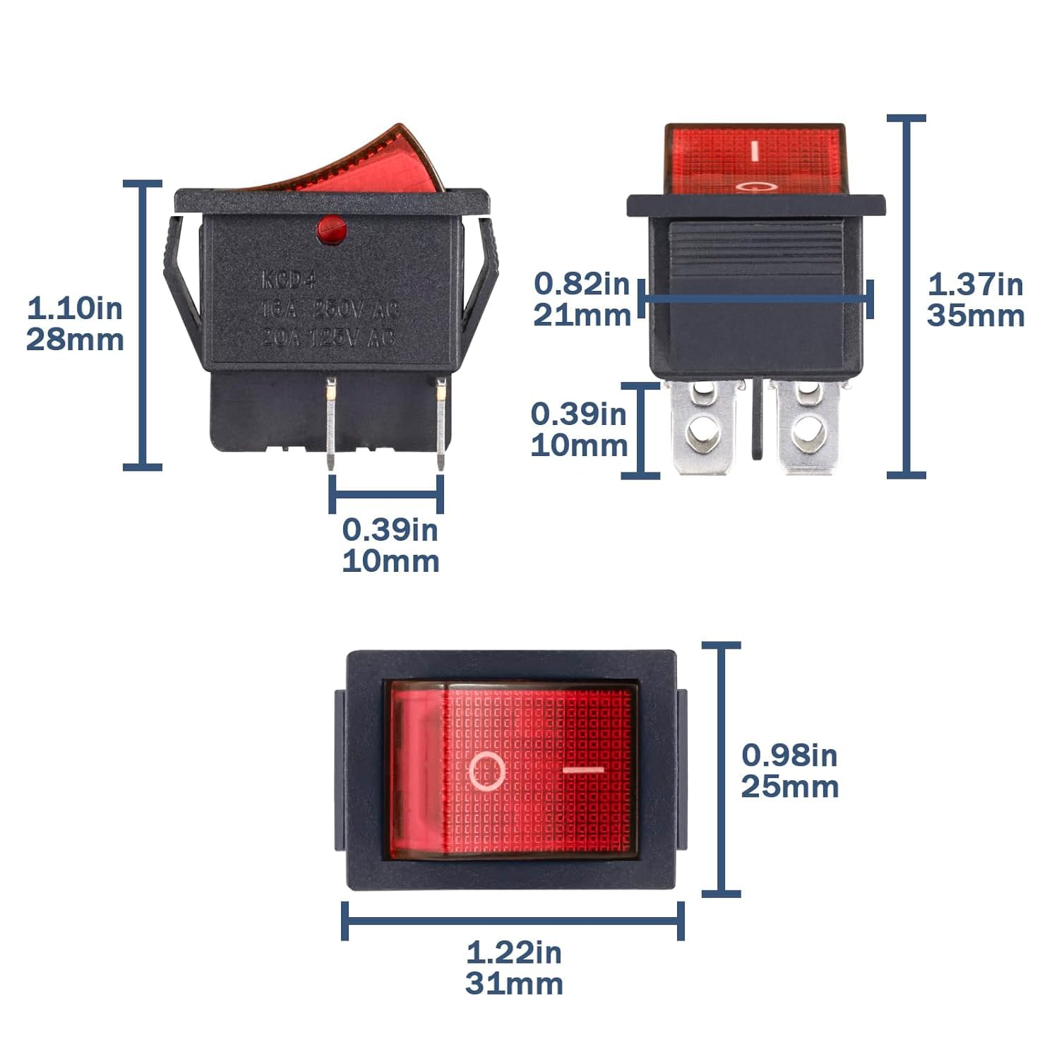 sunwes 2 Pcs KCD4 DPST ON-OFF 4 broches Bateau Interrupteur A bascule 15A/20A AC 250V/125V Caracteristiques: Double Pole levier unique (DPST) Type, 4 bornes, On-Off Interrupteur A bascule., Enfichable fixation. Couleur principale: Noir, Rouge; Materiel: plastique, metal Note: tir de lumiere et differents ecrans peuvent causer la couleur de l'article dans l' un peu differente de la vraie chose. ON OFFON Reset B Interrupteur à Bascule étanche KCD4, 2 Positions-3 Achetez 2 pcs kcd4 dpst on-off 4 broches bascule bateau interrupteur 15a / 20a ac 250v / 125v-meini. sunwes 2 Pcs KCD4 DPST ON-OFF 4 broches Bateau Interrupteur A bascule 15A/20A AC 250V/125V Caracteristiques: Double Pole levier unique (DPST) Type, 4 bornes, On-Off Interrupteur A bascule. 2 Pcs KCD4 DPST ON-OFF 4 broches Bateau Interrupteur A... Demande de voiture, , bateau, distributeur d'eau, ou d'autres appareils menagers. Interrupteur à bascule KCD4 noir IP65 250V/16A rectangulaire Type de contacts: DPST; broches Quantite: 4; tension et : 15A 250V 125V AC20A L'erreur de mesure permis est de ± 1-3 cm. Poids: 25g; Contenu coffret: 2 x Interrupteur a Bascule