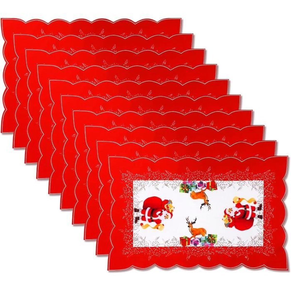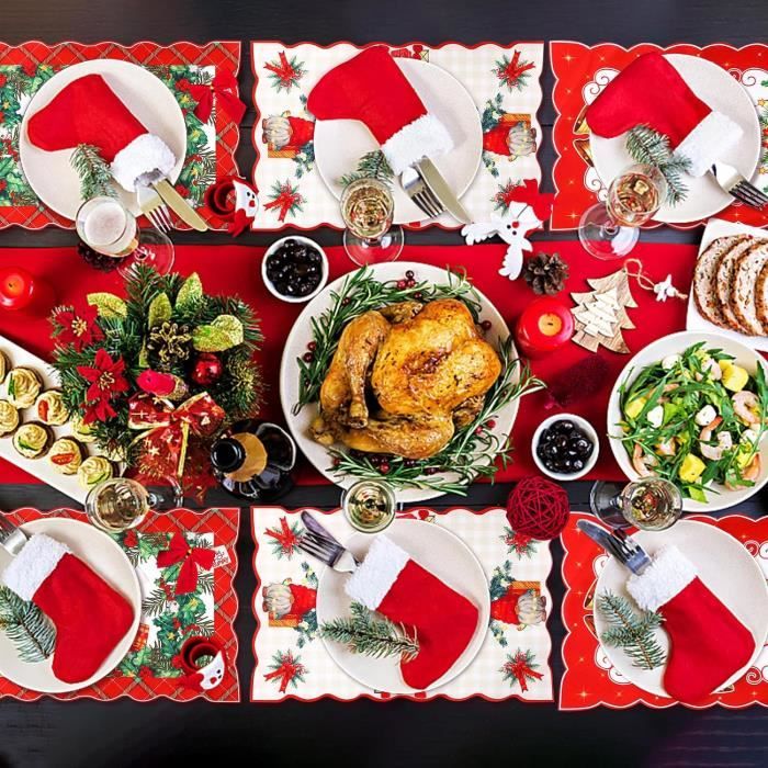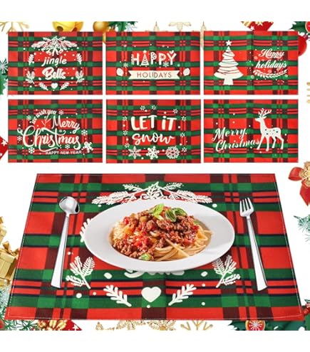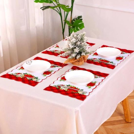 6 Pcs Set de Table Noel en Lin, Sets de Table de Noël Bonhomme de Neige, Set de Table Lavable Rouge, Sous Assiette de Table Noel pour Décoration de Cuisine Home 45., 3 x 29., 8 cm Fonction: Les sets de table de Noël sont parfaits pour placer les couverts et protéger votre table des rayures et des taches. 【Nombreux Usages】Les décorations de table de Noël sont parfaites pour décorer votre table à Noël. Ce lot de 6 sets de table de Noël de la marque ZSONIX est conçu pour apporter une touche festive à votre table grâce à ses motifs classiques de bonhommes de... Lorsqu'ils se salissent, vous pouvez simplement les laver à l'eau ou les essuyer avec un chiffon humide. 【Linge de Haute Qualité】Nos décorations de table de Noël sont fabriquées en lin de haute qualité, respirant, doux et confortable, antidérapant, résistant aux taches et durable. 【Ensemble de Sets de Table de Noël】Vous recevrez un total de 6 sets de table de Noël de dimensions 45., 3 x 29., 8 cm. Ils vous permettent de décorer facilement votre table de fête à Noël, d'améliorer l'expérience de repas et de créer une ambiance festive et joyeuse La combinaison de couleurs vives rend les sets de table particulièrement uniques et attrayants. Les sets de table protègent votre table des rayures et des taches. Les sets de table sont idéaux pour placer les couverts et protéger votre table. 6 Pièces Set de Table Noel, Lavable 30x45 cm, Imprimé Cousu Assiette De Noel 6 Pcs Set De Table Noel En Lin, Sets De Table De Noël Bonhomme De Neige Set De Table De Noel Avec leurs jolis motifs de bonhommes de neige et de flocons de neige, ils créent une atmosphère festive de Noël