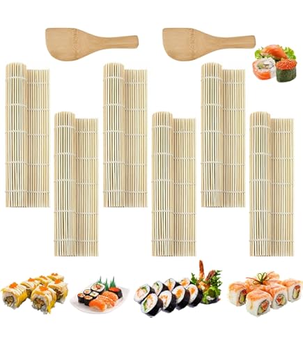 Avec cet outil, vous pouvez avoir des sushis de qualité restaurant tous les soirs de la semaine sans le coût du restaurant. 241g/8.5oz Taille: Approx. 35x30cm/13.8x11.8in Épaisseur: env. 0.2cm/0.1in Description du produit: Beau et beau, le produit est rayé, très pratique à utiliser Gros plan sur les mains d'un chef en train de rouler des sushis sur un tapis de bambou. Il est à la fois solide et souple, vous donnant un contrôle total sur le rouleau. - Utilisation: tapis de four, tapis de sushi, omelette, rouleau à gâteau, rouleau de riz et de légumes, etc. Vous pouvez faire des sushis classiques être créatif. - La fabrication de sushi est savoureuse et amusante avec notre rouleau pour la préparation de sushis - Obtenez le sushi parfait roulé dans votre propre cuisine! Faire des sushis est savoureux et amusant avec notre rouleau pour faire des sushis. - Taille: 21,5x23,5x0,5cm. Le forfait comprend 1 x1PC Tapis Sushi en pour tapis de sushi Rolle pour la fabrication de rouleaux de riz et de légumes Sauce Soja 5pcs Tapis De Sushi Roman Facile à Utiliser Coussin De Roulement Léger Sauce Piquante Le Sushi Roller est un set en plastique souple de qualité pour vous permettre de réaliser toute une gamme de sushi, maki et autres rolls avec facilité. Fini le... 14 Pièces Kit à Sushi, Kit de Fabrication de Sushi en Bambou, Bamboo