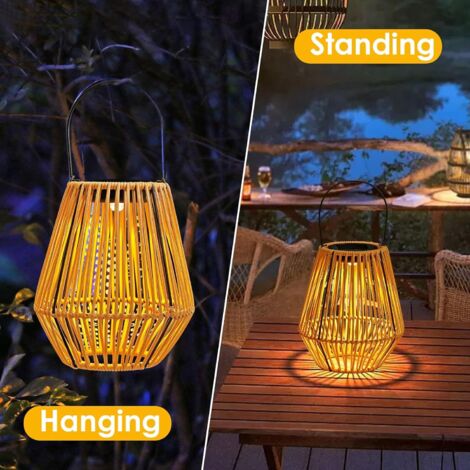 Lampes Solaires en Rotin pour Jardin Extérieur Ip65 Lumières Solaires Suspendues pour Balcon de Jardin Extérieur, 1x Lanterne en Rotin (Ampoule Tungsten) Liquidation Nom du produit : lampes solaires d'extérieur Matériau : rotin + métal Style : ampoule tungstène, lampe LED Dimensions : 13 x 16 cm, hauteur de la poignée 9 cm Poids net : 235 à 270 g., Étanchéité : IP65., Capacité de la batterie : 600 mAh. Elle émet une lumière chaude et donne à votre jardin une atmosphère chaleureuse. C'est la lampe solaire idéale pour les jardins, terrasses, pelouses, chemins et cours. Lampion Extérieur Solaire Lampe LED Solaire D'Extérieur En Rotin, Luminaire Décoratif D'Ambiance, Étanche, Idéal Pour Une Villa, Un Jardin Ou Une Cour Lampe Solaire Extérieure Rotin Matériaux de qualité supérieure pour une longue durée de vie. Notre lampe solaire dispose d'une poignée et peut être accrochée sur les murs, les arbres, les vérandas ou sur des surfaces planes telles que le sol, les bureaux, les tables de chevet, etc. Tenir à l'écart du feu et des températures élevées. Le capteur intégré allume automatiquement la lumière au crépuscule et vous diffuse une lumière chaude jusqu'à l'aube. 【Lanterne solaire】 Cette lampe solaire d'extérieur est équipée d'un panneau solaire et d'un capteur intégré. Lampions D'Extérieur Résistants Aux Intempéries - Lanterne Solaire Led... Temps de charge : 4-6 heures (suffisamment de lumière du soleil) Durée d'utilisation : 6 à 12 heures.