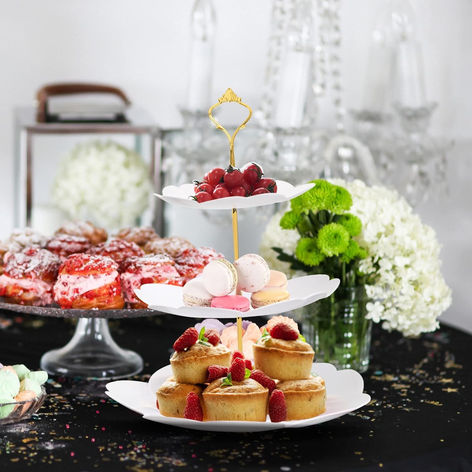 Contenu du paquet : - Plateaux de service en plastique (petits, moyens, grands) x 2 pièces - 2 plateaux rectangulaires - 2 supports d'anneaux. Hauteur totale du présentoir à cupcakes : 34 cm, diamètre de l'assiette supérieure : 15 cm, diamètre de l'assiette centrale : 20 cm, diamètre de la plaque inférieure : 24,8 cm ; plateaux de service rectangulaires : 37 x 24,4 cm (L x l). Il est réutilisable et sûr. Présentoir à étages Présentoir Dessert 3 Niveaux Transparent Le présentoir à bonbons, un objet déco parfait pour la salle de jeux des enfants ! Comme tous les petits, vos enfants adorent picorer des bonbons. Vous les... Présentoir Pour Cupcakes Lot De 11 Présentoirs à Cupcakes Blancs En Plastique à 3 étages Présentoir Cupcake Cdiscount Ce présentoir à dessert en plastique et ses plateaux de service sont fabriqués en plastique PP de qualité alimentaire. Nous nous concentrons sur l'emballage de notre produit pour éviter les dommages, mais si vous rencontrez des problèmes avec nos produits ou services, n'hésitez pas à nous contacter, nous vous répondrons et traiterons rapidement. Vous pouvez l'assembler sur un présentoir à gâteaux à 2 ou 3 niveaux selon vos besoins. Le design des plateaux alimentaires rectangulaires est une nouvelle dentelle, qui ne rayera pas vos mains lors de l'utilisation, ce qui est plus sûr et plus beau. Le support à pâtisserie/friandises est en plastique et léger, il n'est pas plus robuste que les matériaux en céramique ou en métal, nous vous suggérons donc de mettre des aliments plus lourds sur le plateau inférieur pour rendre le support plus stable, ne pas trembler.