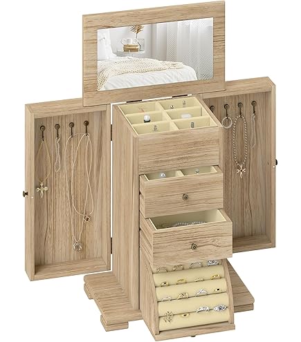 Meangood Grande boîte à bijoux en bois pour Wowen - Grande boîte de Grande boîte à bijoux rustique en bois pour elle Chaque détail est spécialement conçu pour organiser les bijoux. Nous pouvons être sûrs que ce sera le cadeau le plus pratique et mémorable qu'ils aient jamais reçu. Boite A Bijoux En Bois Meangood Boîte à Bijoux Pour Femme, Grande Boîte De Rangement à Bijoux Boite à Bijoux Grande Taille Design compact et généreux : cette boîte à bijoux avec design à 3 couches permet d'utiliser raisonnablement l'espace des bijoux en fonction de vos habitudes ou de votre intérêt, créant une grande capacité et une disposition différente. La boîte à bijoux Meangood est un choix idéal. Le grand miroir au cœur de la boîte à bijoux vous aide à gagner un temps précieux le matin avant de partir pour une longue journée de travail. Ce bel organisateur de bijoux est parfait pour éliminer l'encombrement et les enchevêtrements. Organisateur de bijoux multifonction : la boîte à bijoux à 3 couches offre un grand espace et garde vos bijoux bien organisés, 5 compartiments divisés et une grande boîte à bijoux coulissante, plusieurs compartiments pour ranger bagues, boucles d'oreilles, clous, colliers, broches, montres et autres souvenirs. La Boîte à Bijoux à 2 Couches Offre Un Grand Espace Et Garde Vos Bijoux Bien Organisés, 5 Compartiments Divisés Et Un Grand Tiroir Coulissant... La poignée délicate en métal met en valeur la beauté rétro.