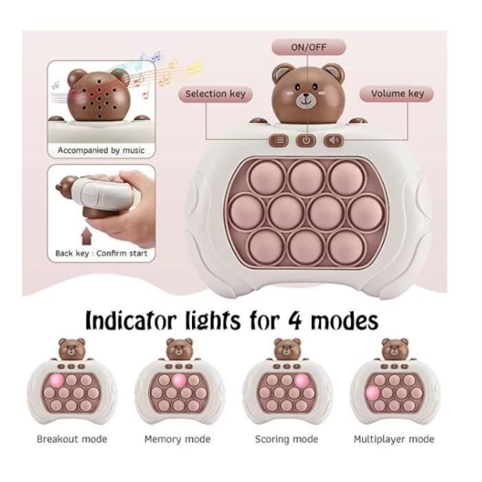 Cette machine de jeu de puzzle rapide est addictive à bulles classiques combinées avec des jeux vidéo rapides et amusants, fabriquée en matériau ABS, elle doit être équipée de 3 piles de 1,5 V (piles non incluses) lors de l'utilisation, la taille du produit est de 12,5 cm x 10 cm x 6 cm. Chaque mode ouvre une nouvelle aventure de jeu pour les enfants, et le mécanisme de rupture permet aux enfants de vivre une action rapide à chaque pression sur la console, leur donnant un sentiment d'accomplissement et de confiance Plusieurs modes de jeu : il y a 4 modes de jeu au choix : mode de rupture, mode mémoire, mode score, et mode multijoueur, qui peut exercer la capacité de réaction des enfants, la mémoire et la capacité de pensée logique, c'est très intéressant et peut être utilisé en fonction de l'âge des enfants. Crazy Pop AIPINQI Giocattolo Pop Game Light Up Fidget, 999 Livello Quick Push Game, Whack A Talpa Game, Decompressione Breakthrough Puzzle Pop Game Machine, Modalità Di Gioco Multiplo Giocattolo Per 3 Anni Pop It Electronique Cadeau idéal : le jeu Pop Quick Push est un excellent cadeau pour les enfants ou les adultes de tous âges et est un excellent ajout à toute collection de jouets, son design coloré et ses jeux interactifs divertissent vos enfants, réutilisable et facile à nettoyer, l'un est inclus dans le colis que vous recevez et les piles ne sont pas incluses Popit Fidget Toy Texture Jeu Anti-stress Tendance Jouet à Main Avec Bulles à Pousser Aux... Puzzle Pop It Clavier Pop It Plateau de jeu Pop It Learning Pop It Educatif Pop It Rainbow Choisissez une difficulté différente ou un mode de jeu Machine de jeu de puzzle : bulles classiques addictives combinées à des jeux rapides et amusants Whack-A-Mole, idéal pour les fêtes, les jeux en déplacement, l'interaction parent-enfant, les cadeaux de vacances et les enfants pour travailler sur leurs réflexes et s'éloigner de leur téléphone