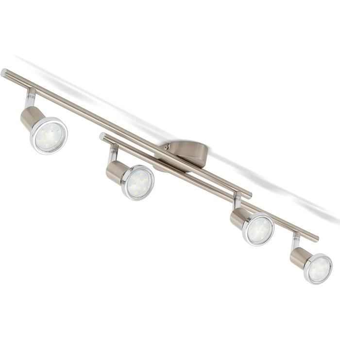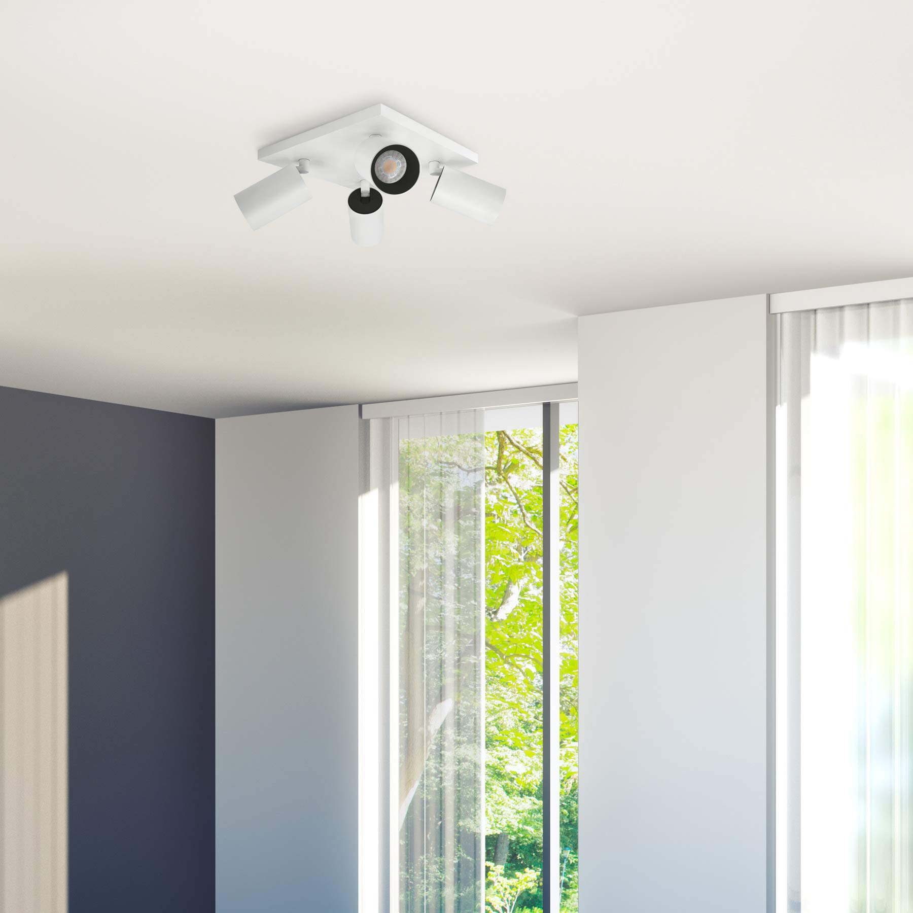 Spots orientables et rotatifs - L'ampoule est facilement accessible et peut être changée à tout moment Luminaire Plafonnier Plafonnier 4 Spots Orientables Pour Ampoule GU10 Plafonnier Chambre Les spots des luminaires Alvo peuvent être tournés ou pivotés. Description du produit Le plafonnier design à 4 ampoules Alvo pour votre maison. Design moderne scandinave : spot noir et blanc. La couleur blanc mat du rond et des spots est complétée par le contraste de l'arrière noir du corps de la lampe... Couleur de la lampe : blanc mat, noir – Dimensions de la plaque de base : 240 x 240 x 15 mm – Dimensions de chaque spot : 98 x Ø 60 mm Choisissez quatre ampoules GU10 (maximum 8 W chacune) avec des dimensions standard. Plafonnier 4 Spots Led, 2 Spots Fixes, 2 Spots Orientables, 4X3W, Gu10, Plafonnier Salon Salle À... Des matériaux robustes ont été utilisés afin que la fonctionnalité de la lampe intérieure ne soit pas trop courte. La couleur blanc mat du rond et des spots est complétée par le contraste de l'arrière noir du corps de la lampe et s'adapte parfaitement à votre plafond. Wowatt 4-Plafond Lampe LED Plafond Spot 4 Spots Plafonnier Rotatif Blanc Froid Couloir de Cuisine 4 x 6W GU10 230V 6000K 600LM Plafond Lampe Spot IP20 Métal Mat Nickel Réglable En option, l'anneau avant des spots peut également être changé (disponible séparément en or ou blanc). Cette lampe est livrée sans ampoule. Ce spot à quatre lampes est idéal comme lampe de salon ou de salle à manger. Toutes les lampes ALVO sont également compatibles avec les réflecteurs OSRAM Smart+ LED ZigBee GU10 ou Philips Hue White & Color Ambiance GU10 (version Bluetooth). Finition de qualité supérieure et design intemporel pour votre maison avec le spot de plafond Alvo design à quatre ampoules