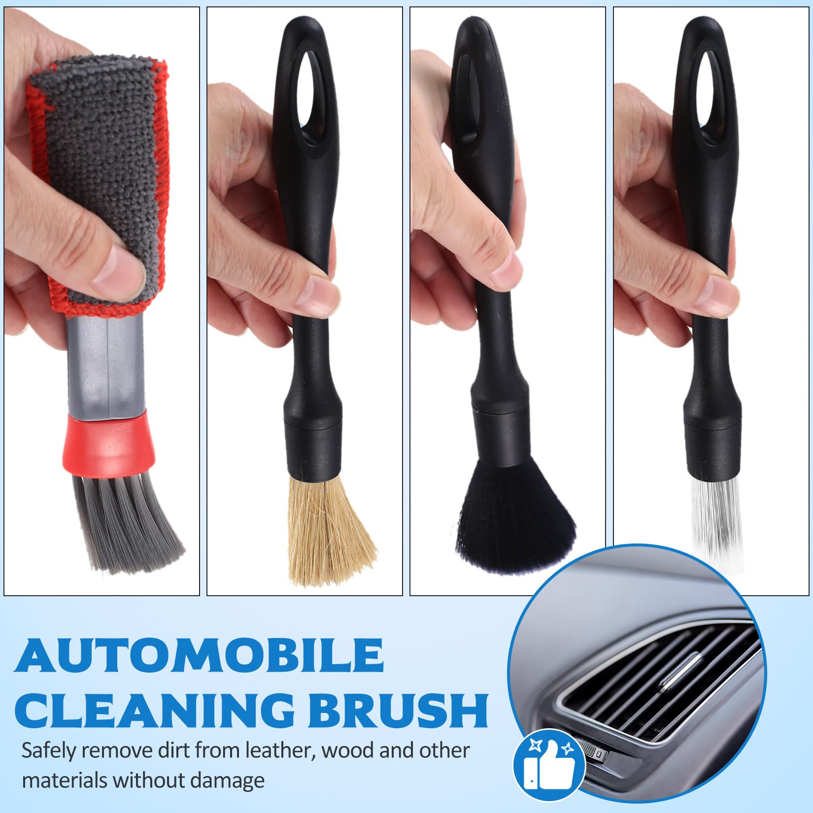 5 brosse voiture intérieur pour répondre aux différentes exigences de nettoyage ; poils souples, poils souples et résistants, ne laissant pas facilement de traces de brossage. Conception amovible La brosse d'esthétique automobile est amovible, facile à nettoyer et à transporter. [Design anti-poussière] Les pinceau nettoyage voitures sont conçues pour être rangées dans une boîte de rangement anti-poussière, ce qui rend leur utilisation plus pratique. Pinceau de Détail,Brosse Nettoyage Voiture,3PCS Pinceau Detailing Auto... Description du produit Zasvec Brosse de Nettoyage Voiture D'intérieur 6 Pièces Pinceau Detailing Auto Brosse Brosse pour tissus d'ameublement du véhicule pour un nettoyage plus détaillé, utilisable à sec ou humide [Coque en plastique, poils souples] La coque de la pinceau detailing auto est en plastique, résistant; les poils sont souples, doux et résistants, et ne laissent pas facilement de traces. FindTheDeal : découvrez sans effort les offres de shopping sur FindTheDeal. En outre, la conception amovible facilite et accélère le nettoyage. [Taille portable] Chaque pinceau voiture intérieur a une taille différente, compacte et portable, vous pouvez choisir différentes brosses à utiliser en fonction de vos besoins de nettoyage. Les poils étant plus denses et plus souples, ils réduisent les dommages causés à la peinture de la voiture et évitent les rayures. Pinceau Nettoyage Voiture 3 Pièces Pinceau Detailing Auto pour Nettoyer Les Jantes, Les Brosse Nettoyage Voiture Interieur Kit Nettoyage Voiture(5Pcs), Brosse Douce Anti Poussiere Intérieur Kit Lavage Voiture Pinceau Nettoyage Voiture 5 types de brosses, détachables] L'emballage contient 5 types de nettoyage intérieur de voitures, qui peuvent répondre à différents besoins de nettoyage ou différencier l'utilisation, en choisissant différentes brosses à utiliser à volonté. Pinceaux de nettoyage pour voiture, lot de 8 brosses... Trou de suspension La brosse à long manche est dotée de trous de suspension, ce qui la rend plus belle et plus pratique à ranger.